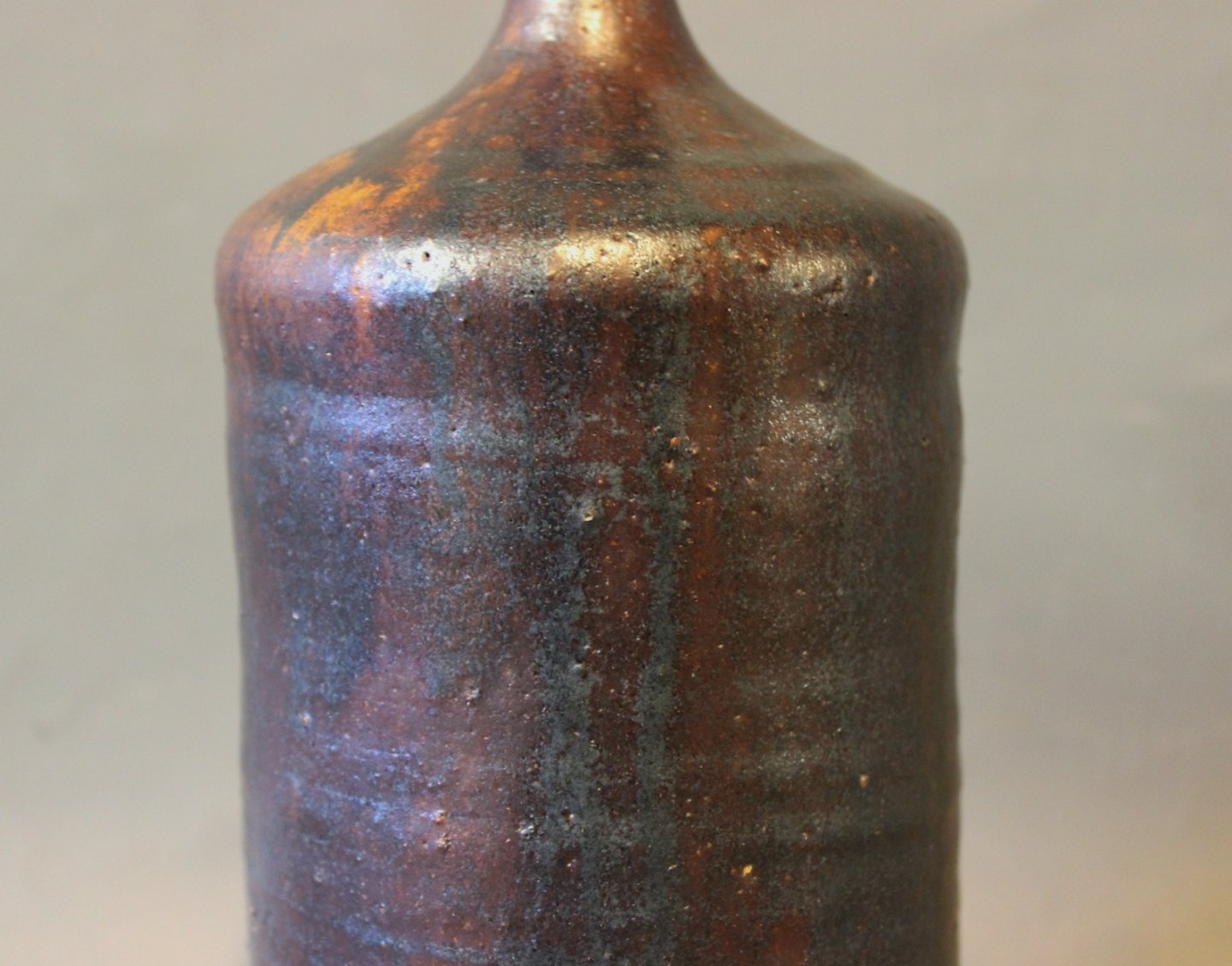 Mørkerød keramik flaske/vase i flot brugt stand.