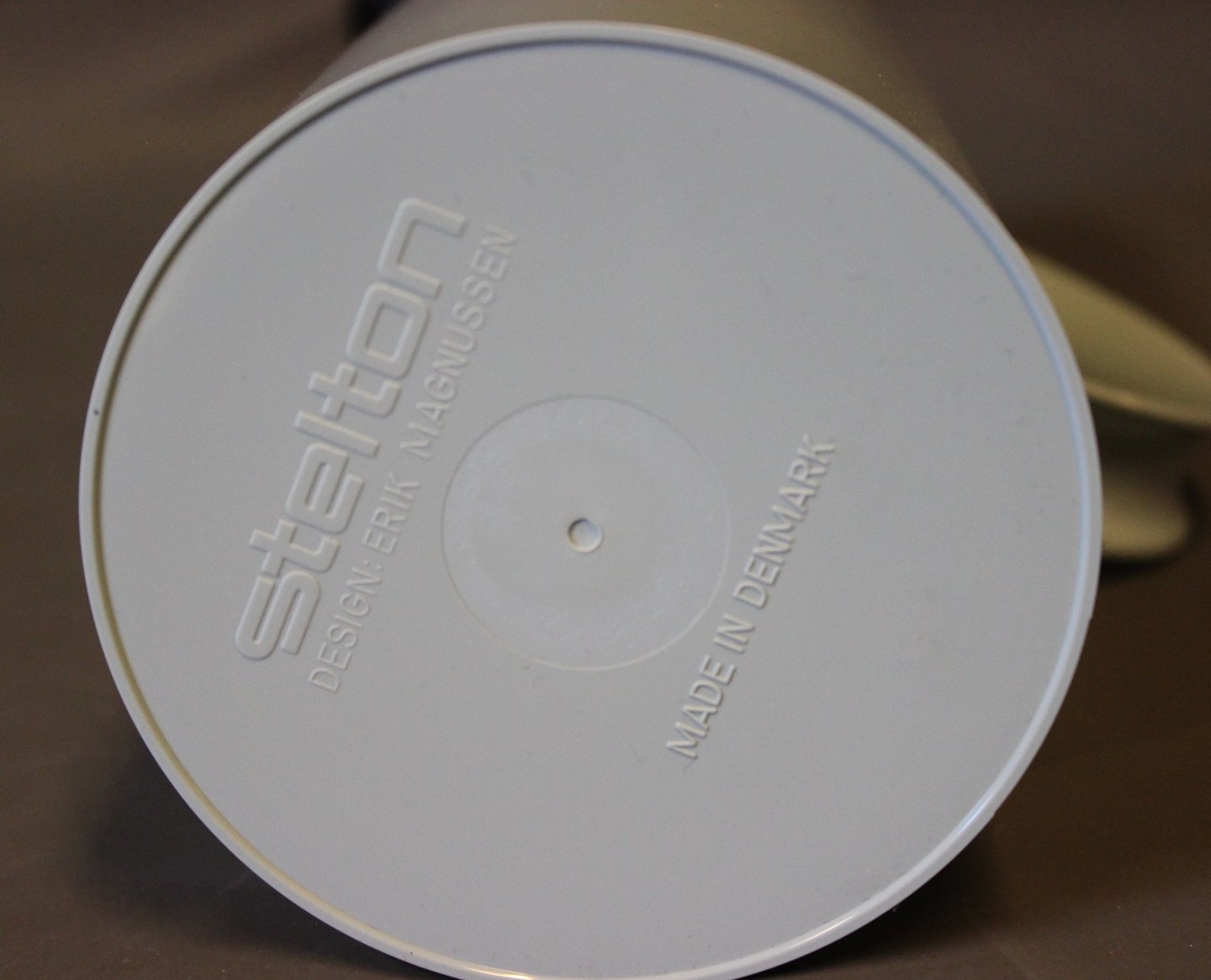 Stelton EM77 thermos in light blue plastic, designed by Erik Magnussen.