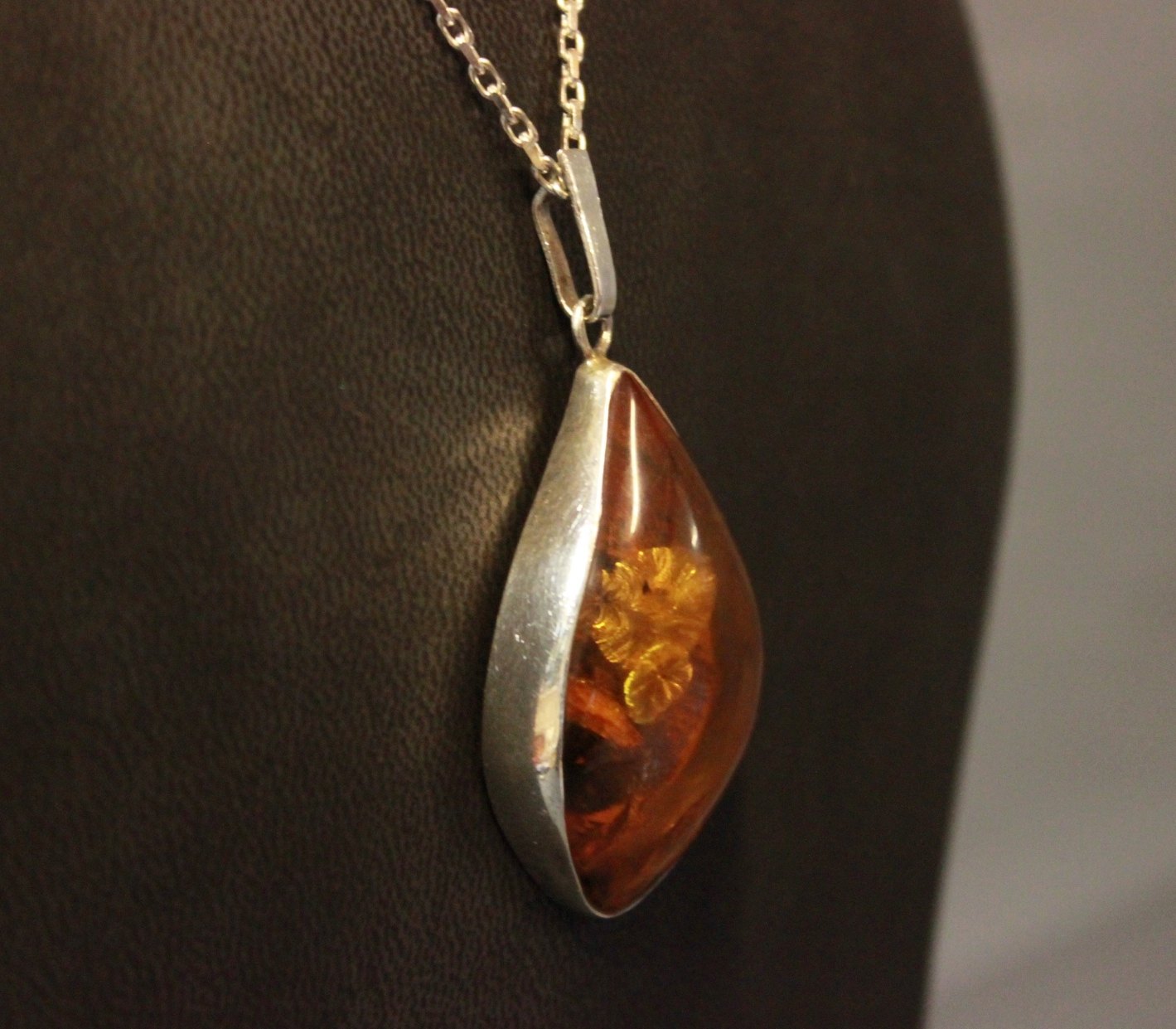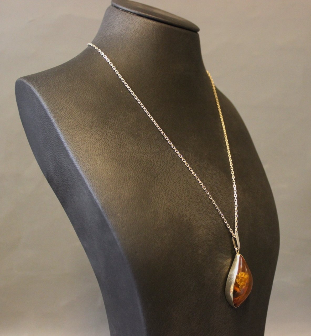 Halsvedhæng samt kæde af 925 sterling sølv og rav, stemplet HS.