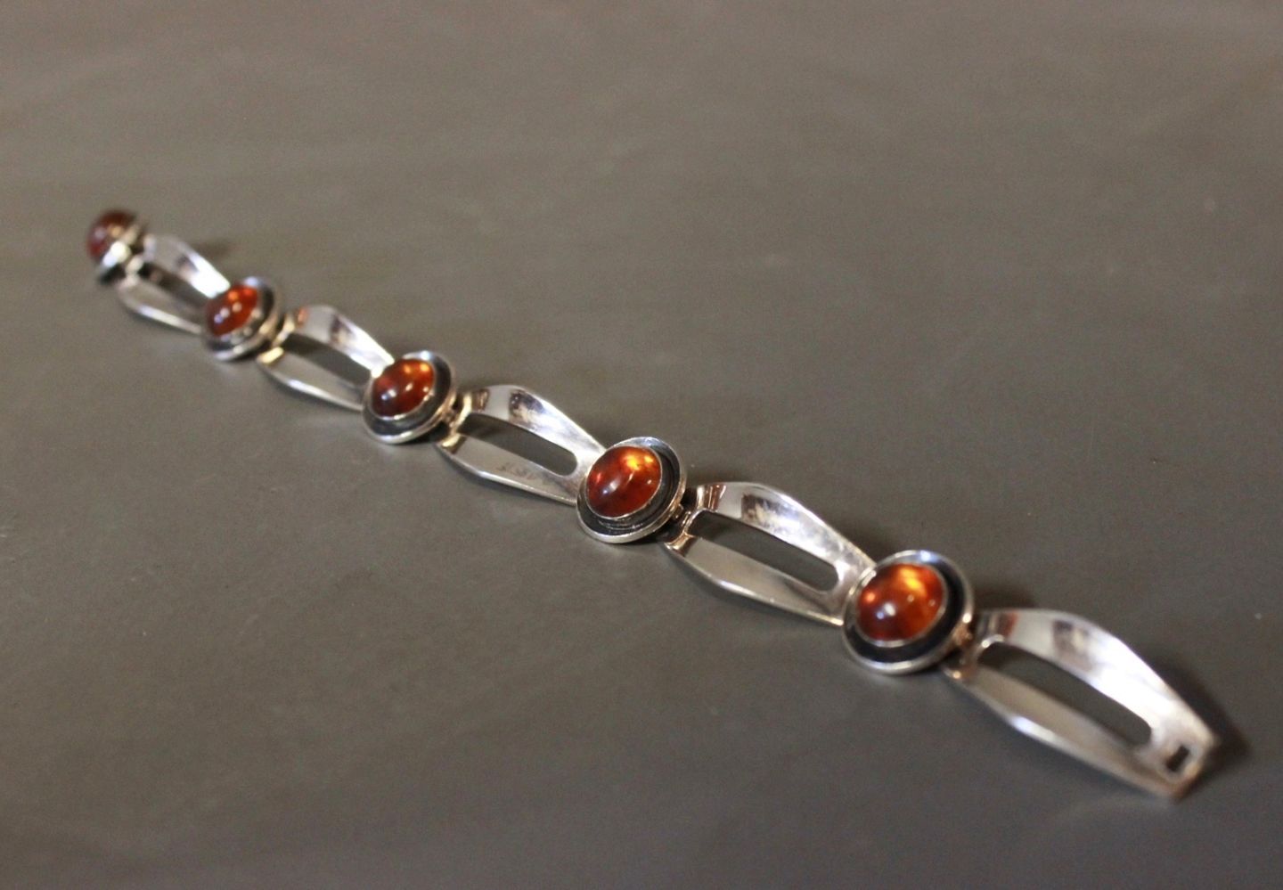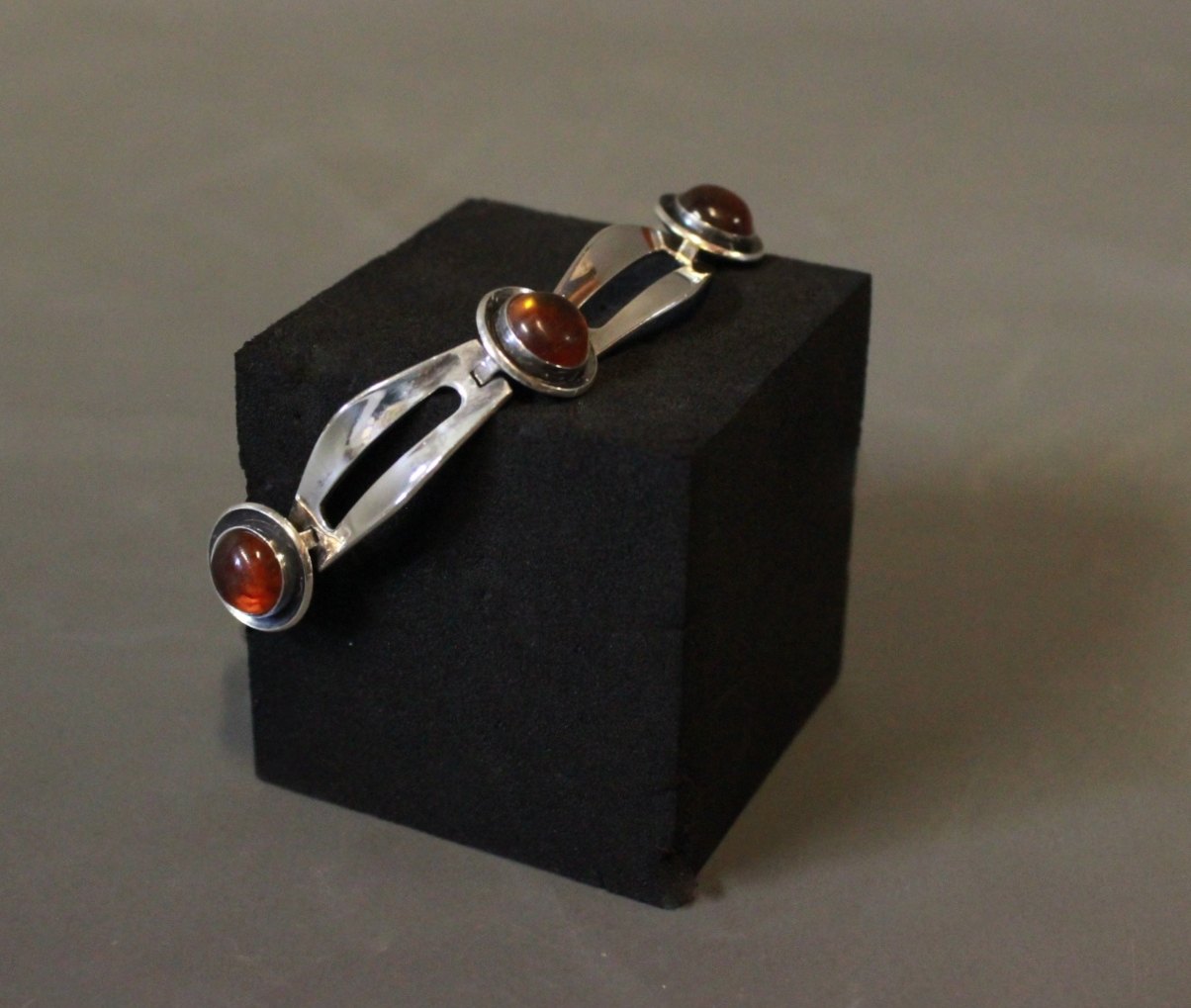 Armbånd i 925 sterling sølv med rav stemplet FROM af N.E. From.