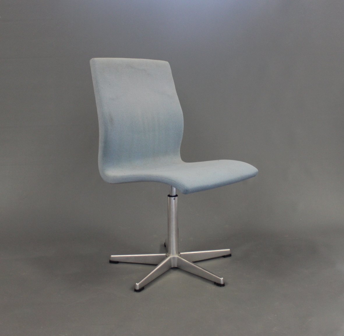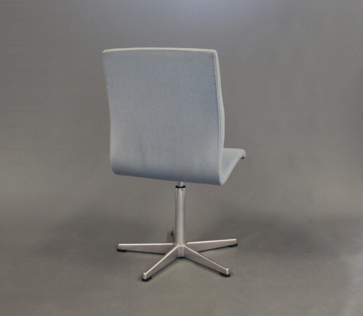 Et par Oxford kontorstole i blåt stof af Arne Jacobsen og Fritz Hansen.