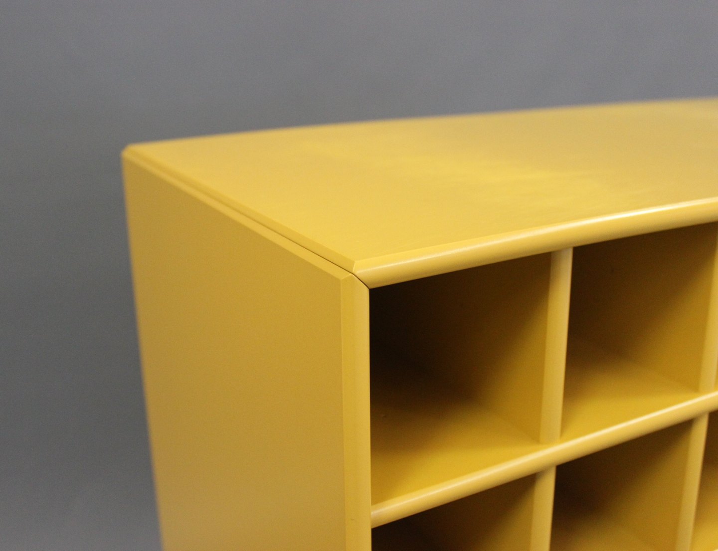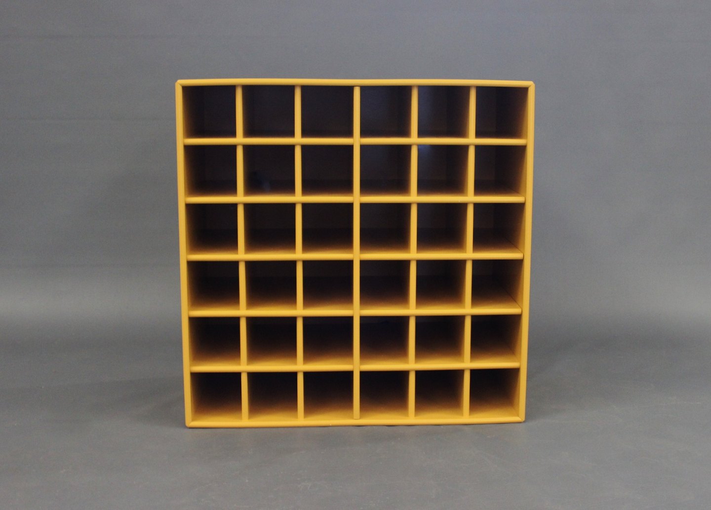 SoldBookcase in yellow by Montana with 36 smaller spaces for wine or similar. We have many different bookcases by Montana in stock, contact for more info.