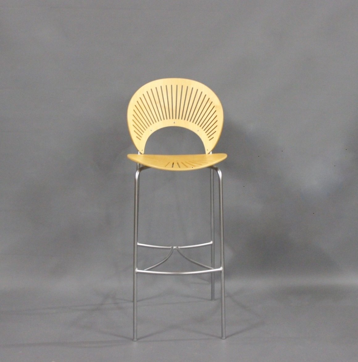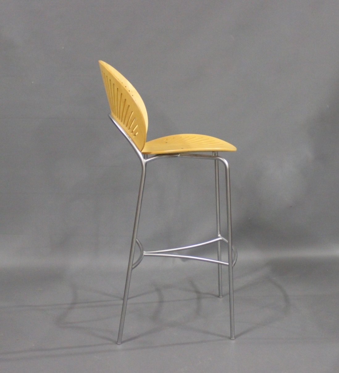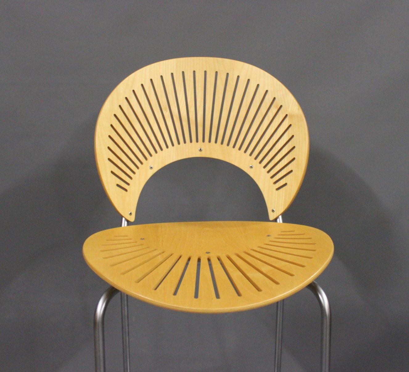 A set of Trinidad stools in Birch and with frame in chrome. The stools was designed by Nanna Ditzel in 1998 and manufactured by Fredericia furniture. Model no. 3300 and serial no. 1002.