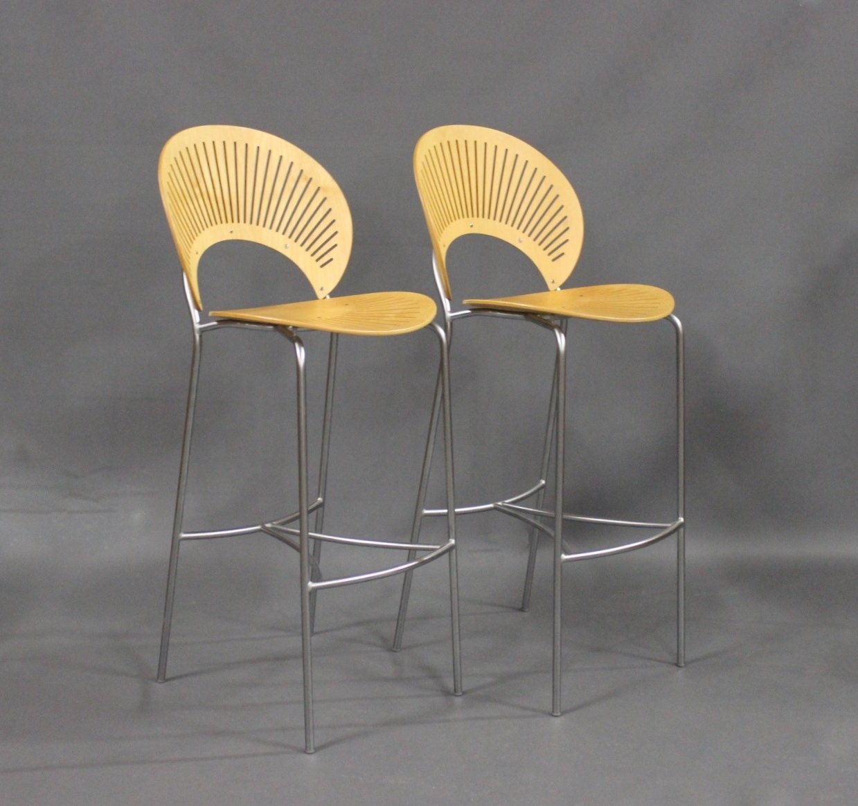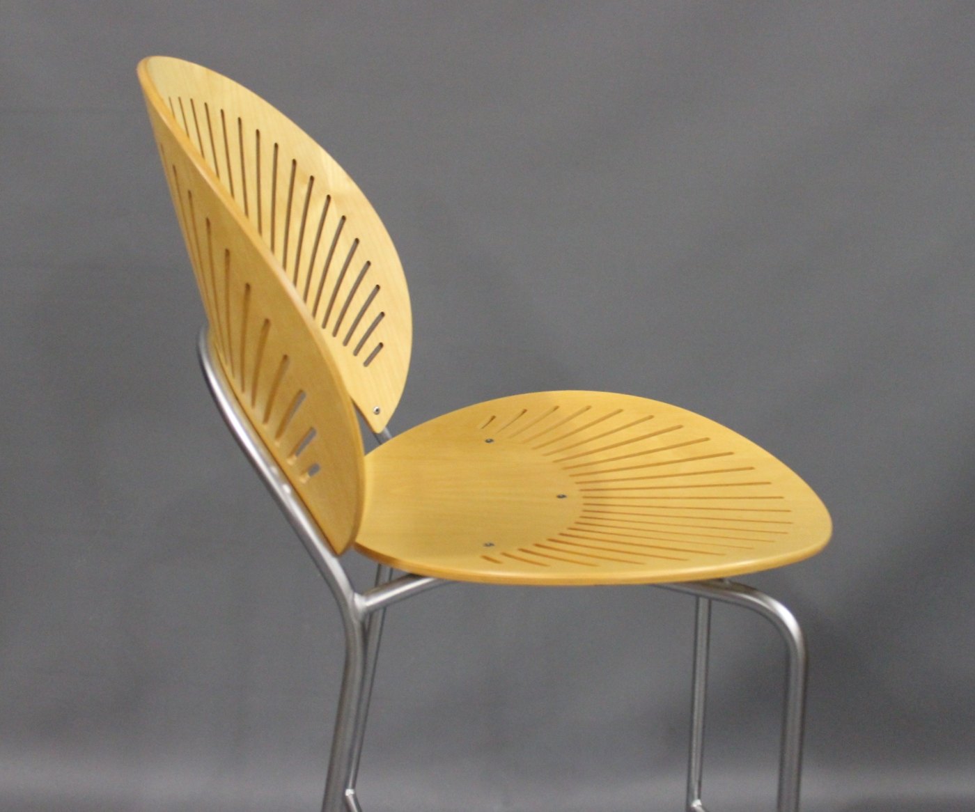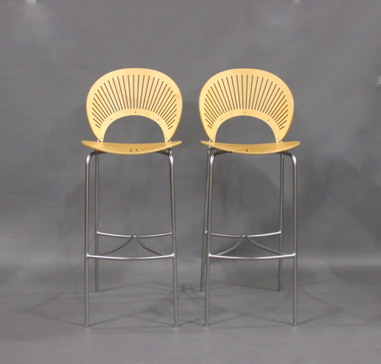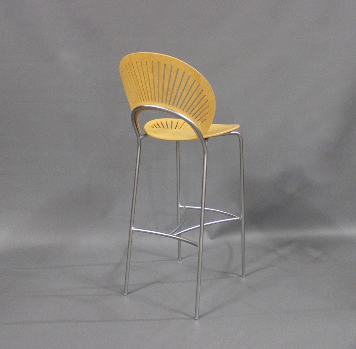 A set of Trinidad stools in Birch and with frame in chrome. The stools was designed by Nanna Ditzel in 1998 and manufactured by Fredericia furniture. Model no. 3300 and serial no. 1002.