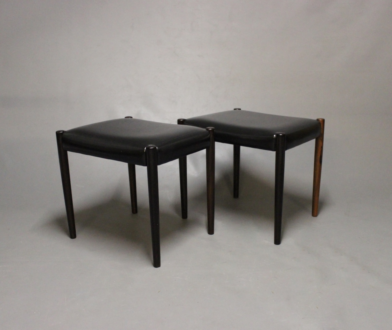 SolgtEt par skamler i klassisk sort læder og palisander af dansk design fra 1960erne. Skamlerne vil kun blive solgt samlet.