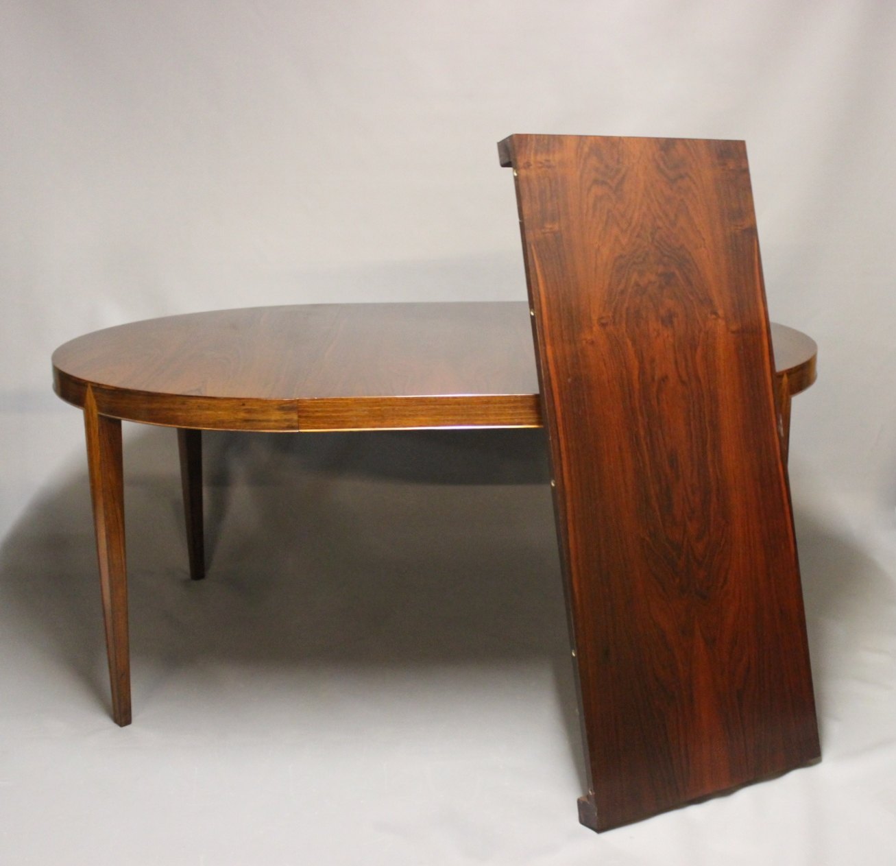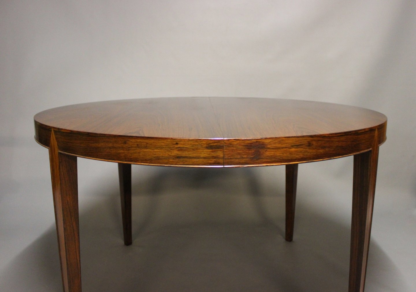 SoldRound dining table with extensions in rosewood manufactured by Haslev Furniture in 1960s.