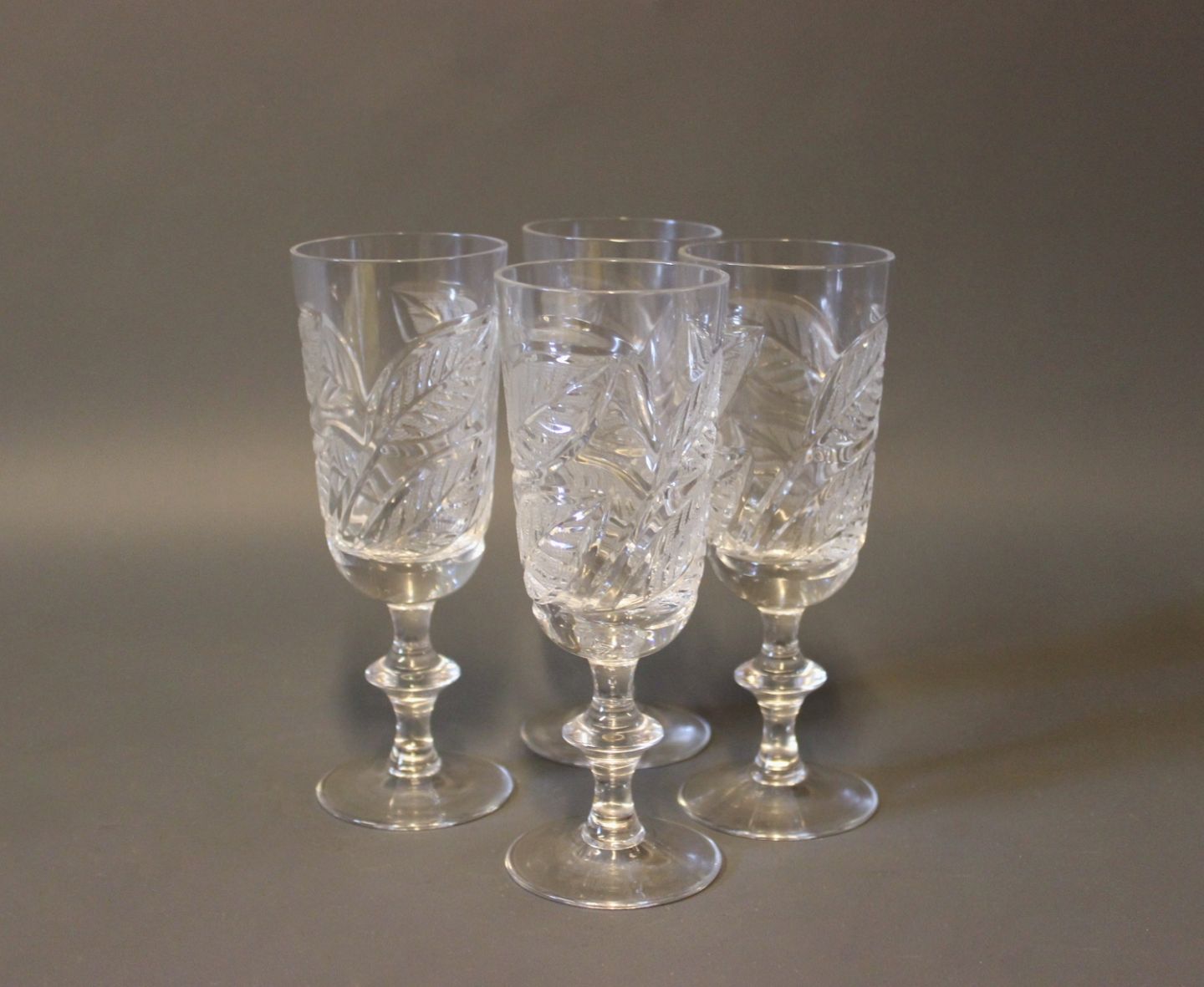 Sæt af 4 champagne glas dekoreret med bladmotiv.