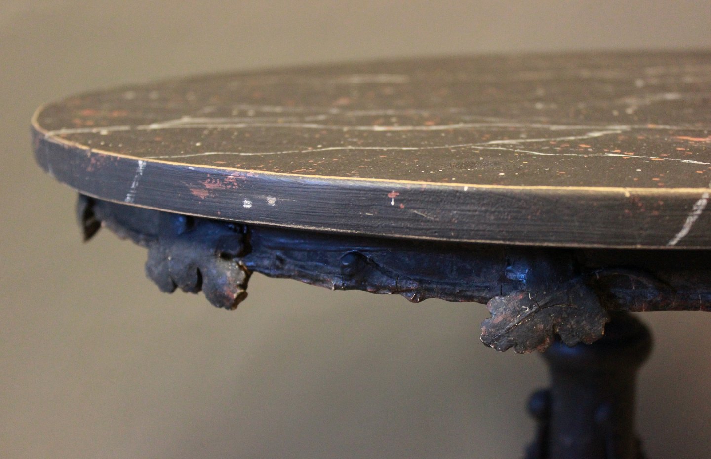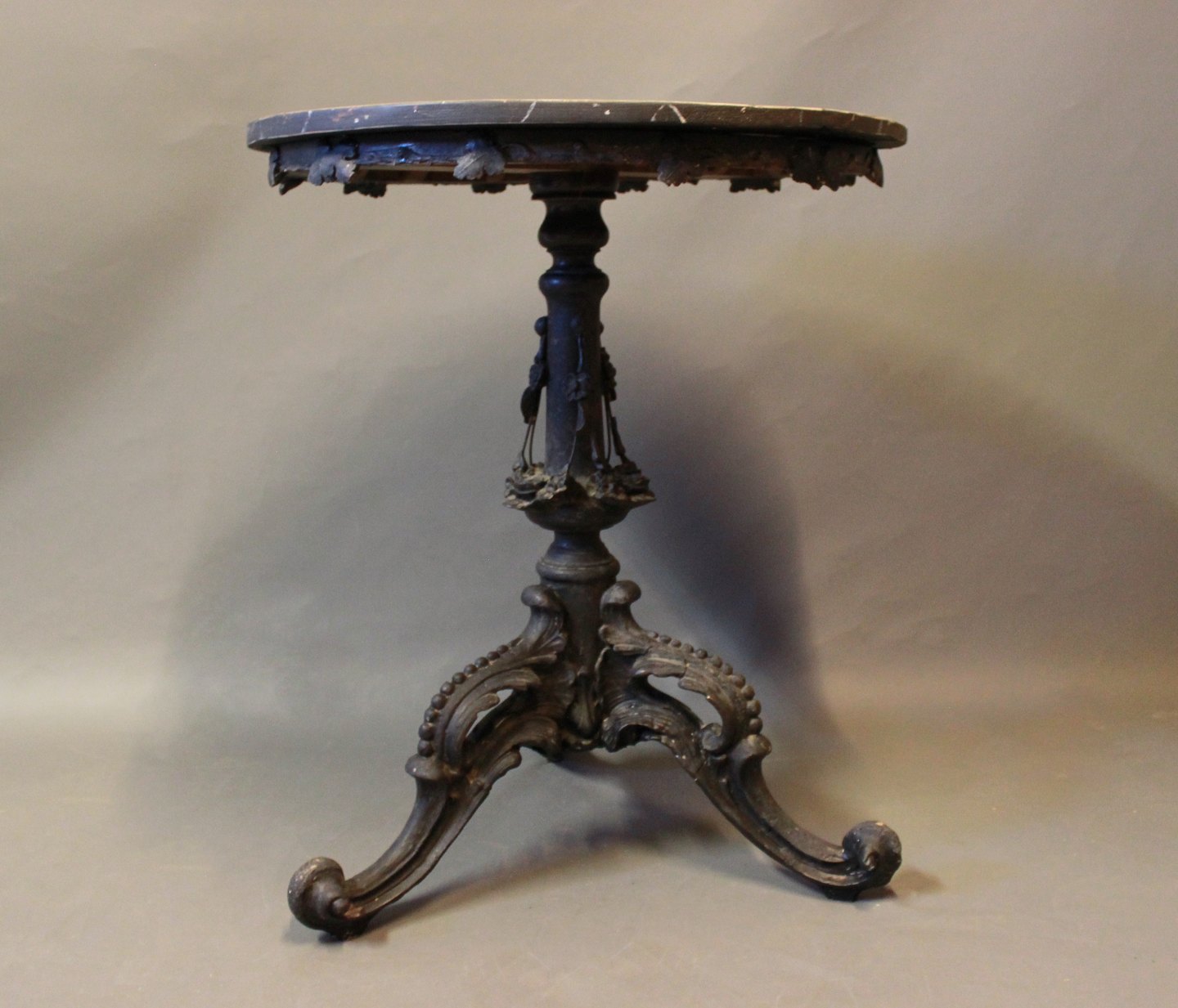 SolgtRundt piedestalbord med sort marmoreret bordplade i stilen Gustaviansk fra omkring år 1880.