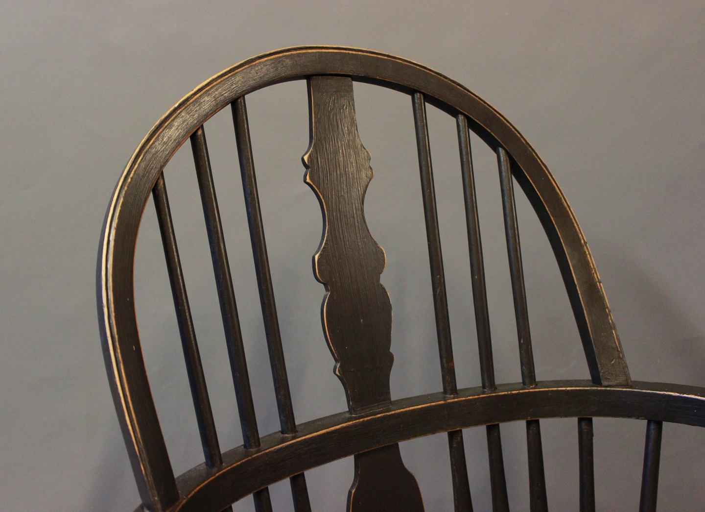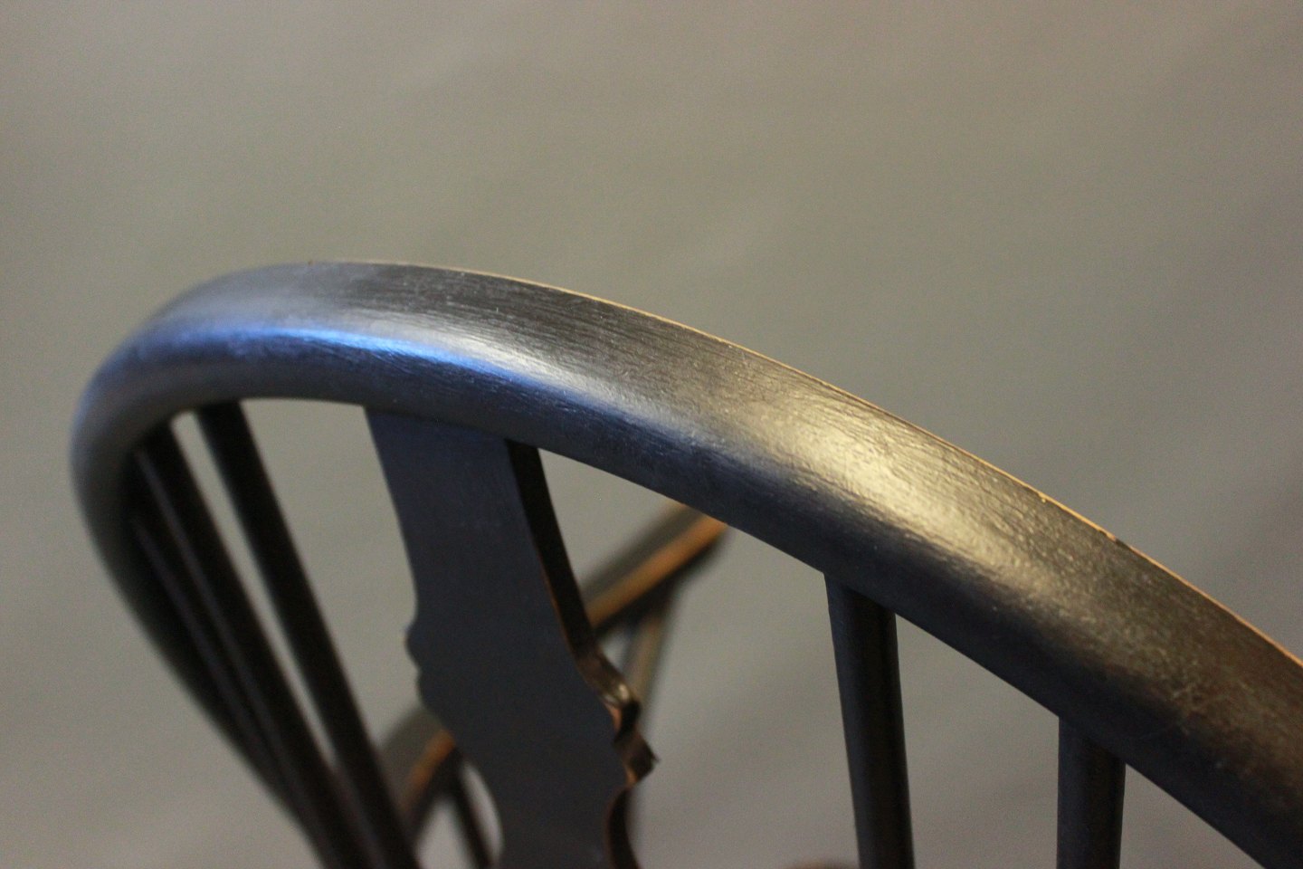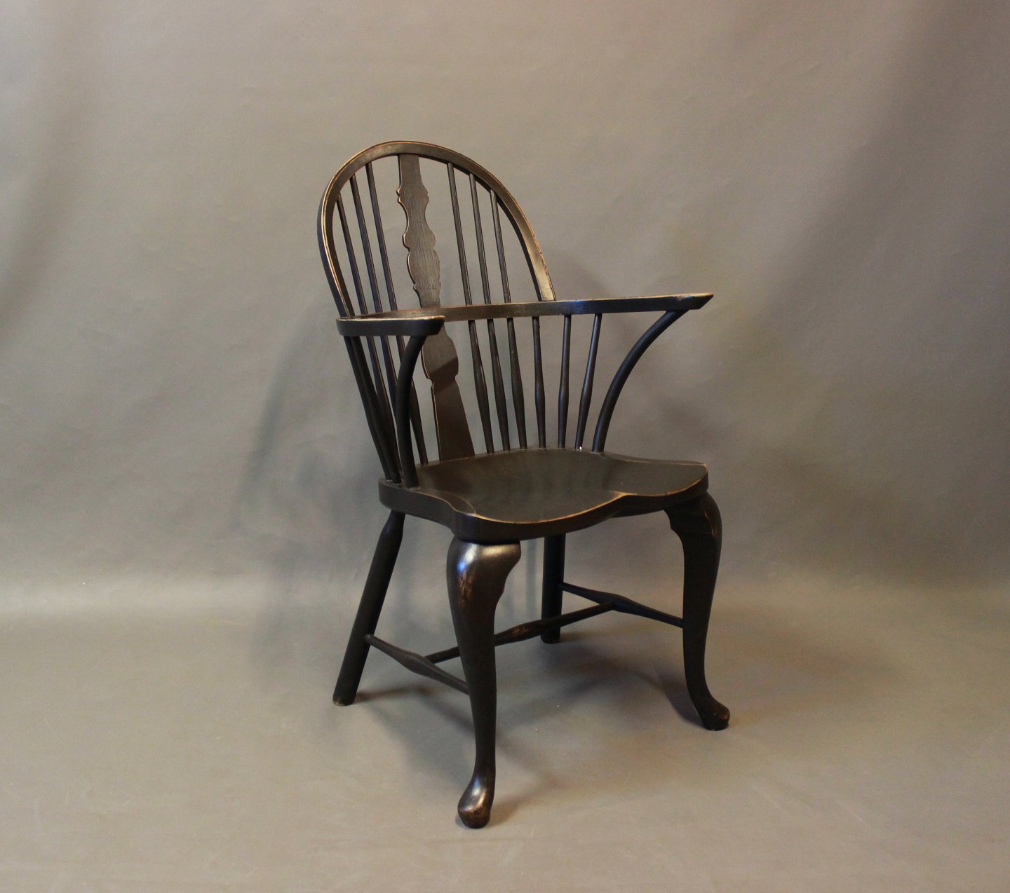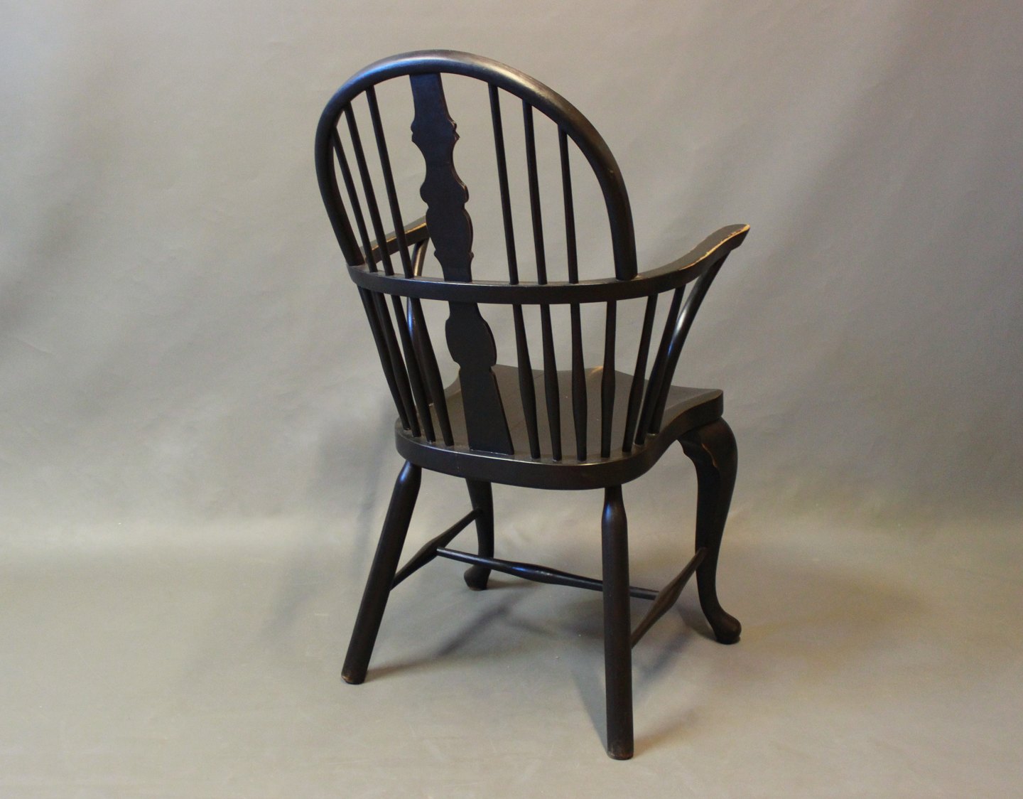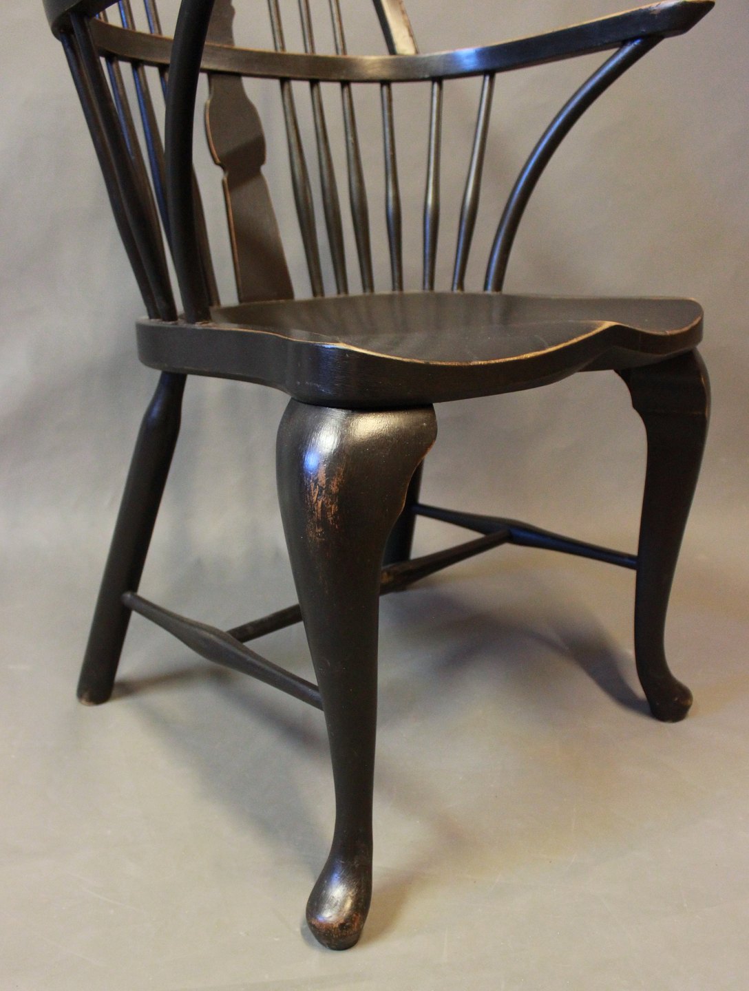 Engelske sortmalede Windsor armstole i træ fra 1880erne.