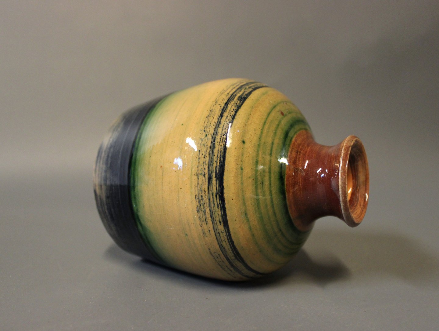Mindre vase i flere farvet glasur af ukendt kunster.