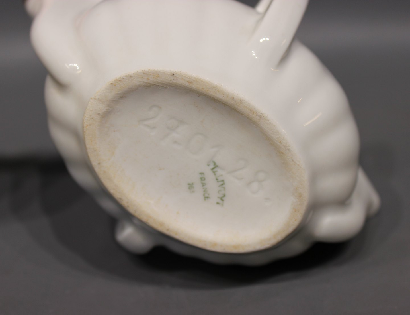 Delicate small white french porcelain jug stamped 27.01.28.