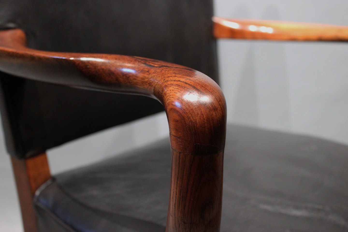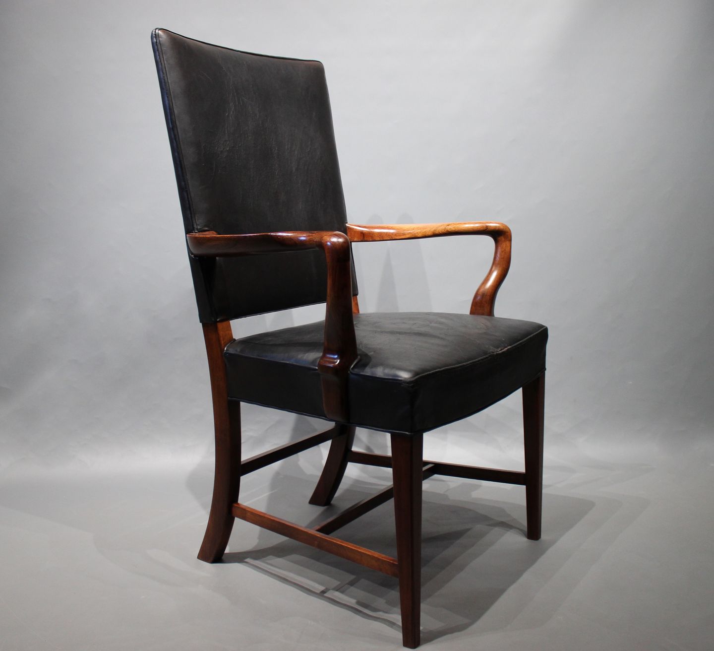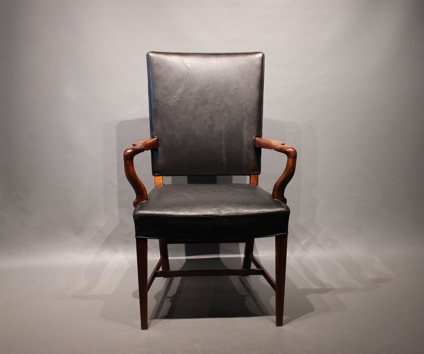 SoldArmchair in walnut and with original black leather upholstery designed by Fritz Henningsen from the 1940s.