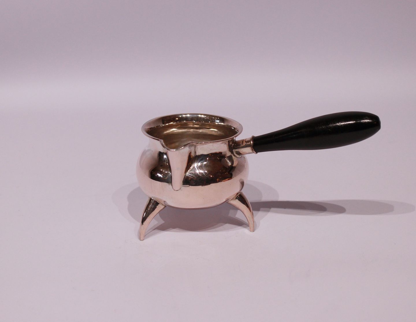Lille sølv sovsenæb med ibenholt håndtag af guldsmed Christian Obbekjer, f1835-d1873.