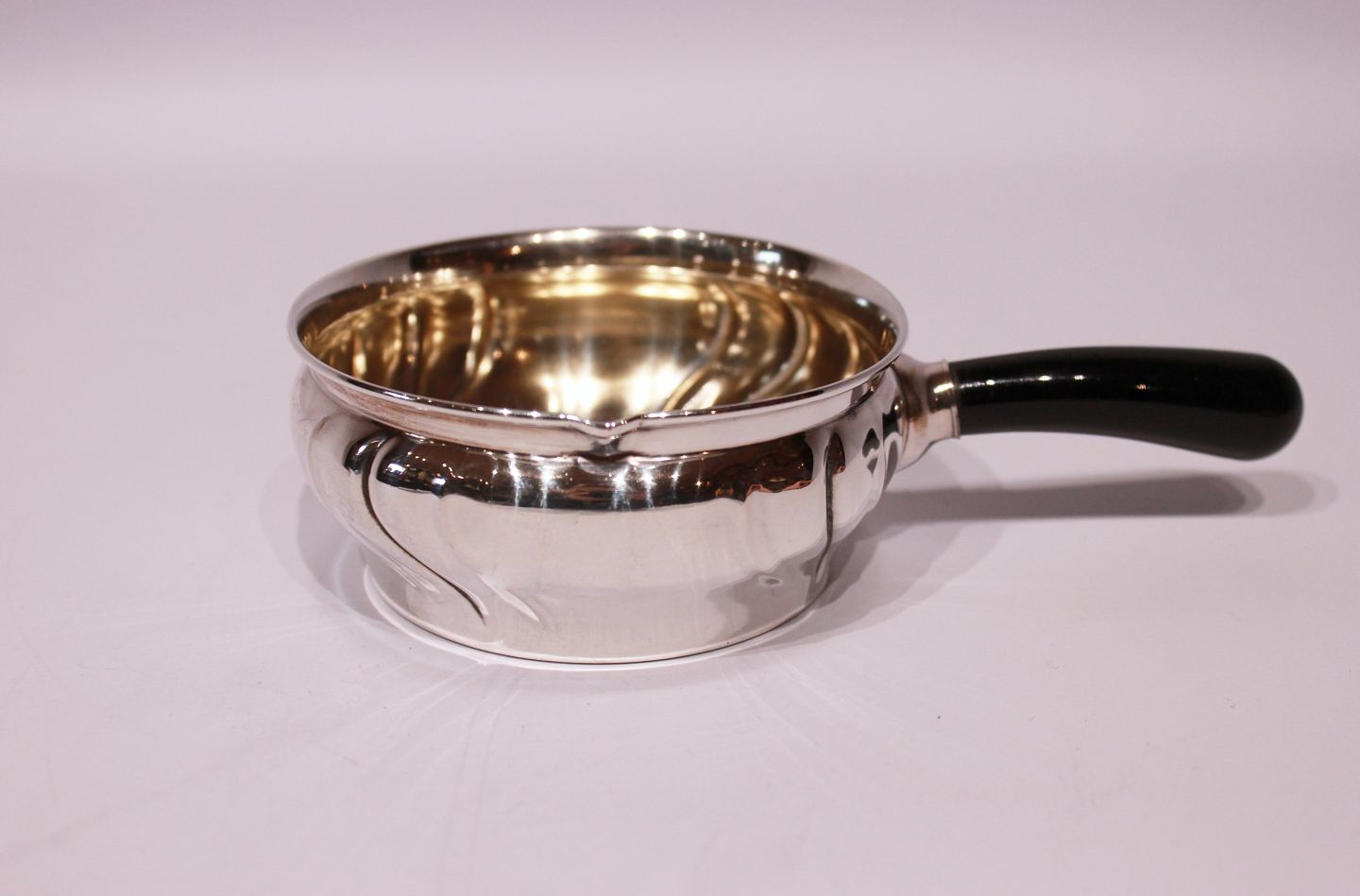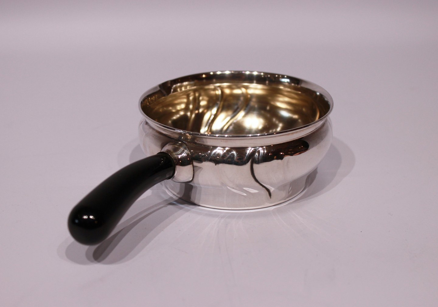 Small sauce boat with ebony handle and in hallmarked silver.