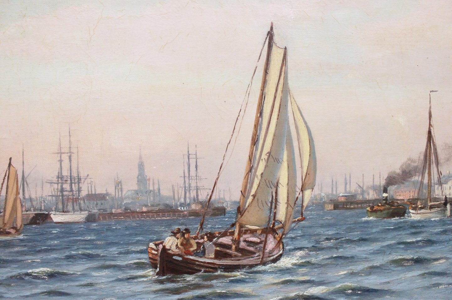 SoldMarine painting with Copenhagen's towers in the background and with gilded frame by Johan Neumann.