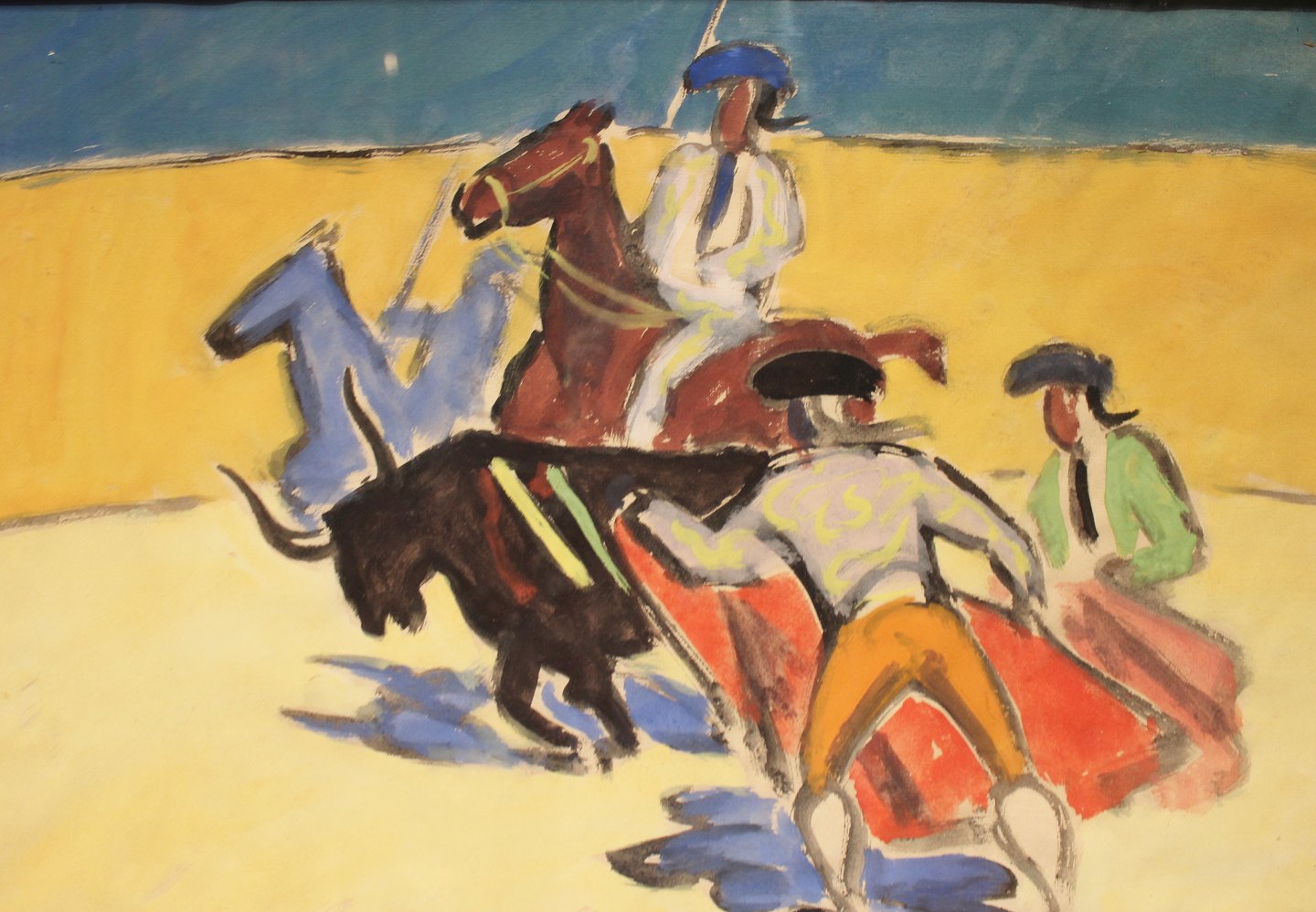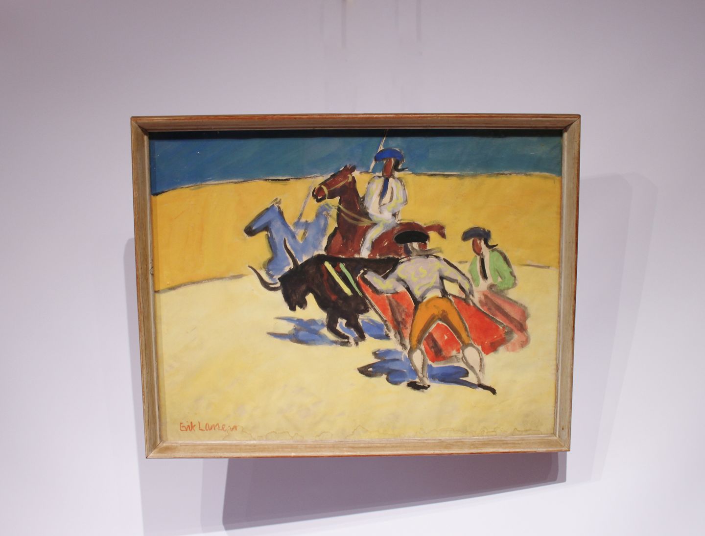 Akvarel med tyrefægtning motiv signeret Erik Larsen.