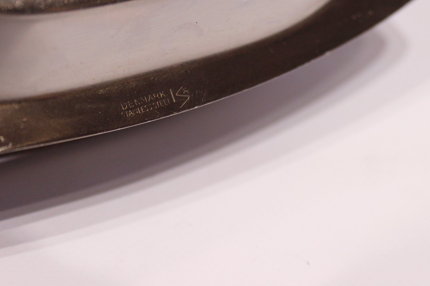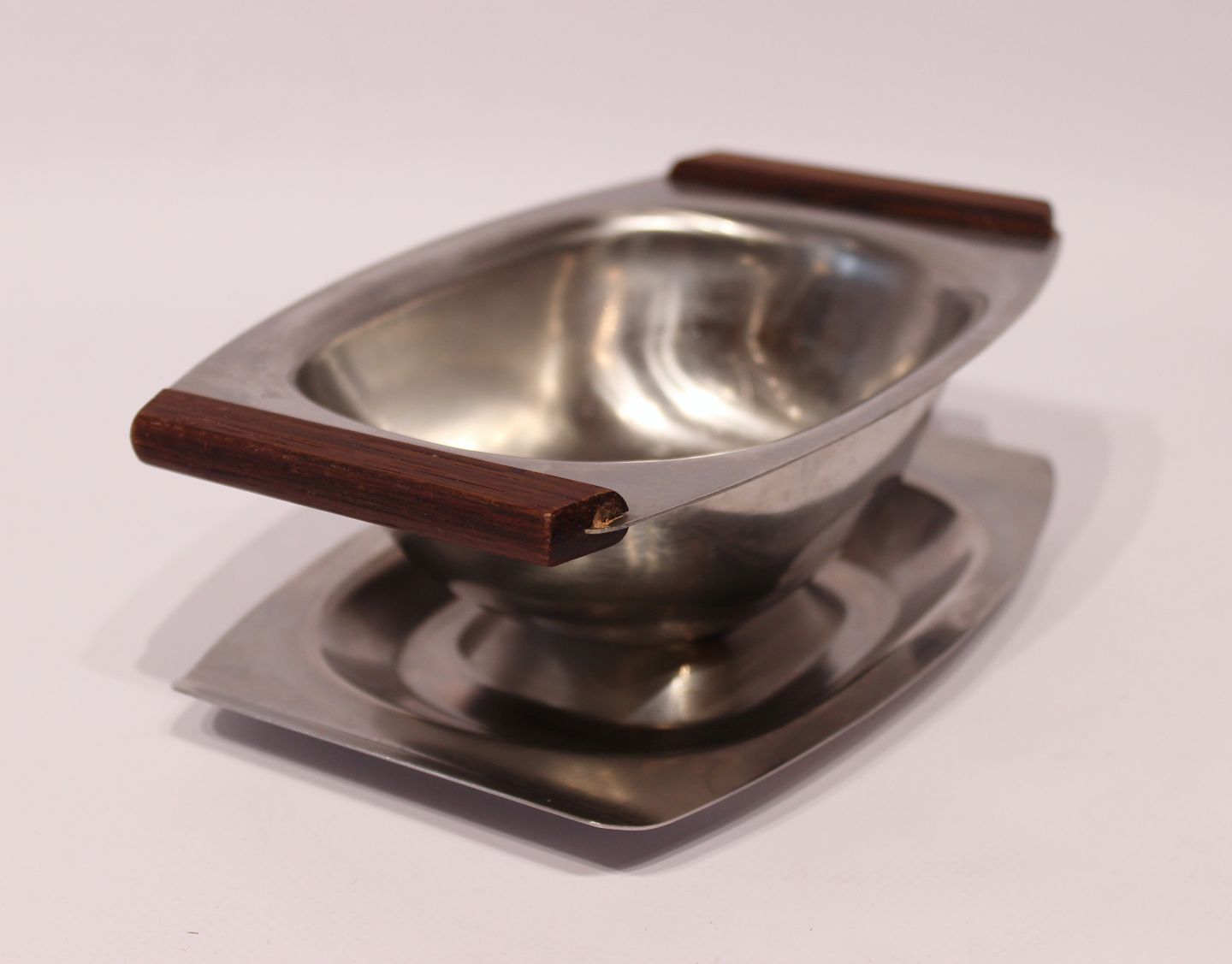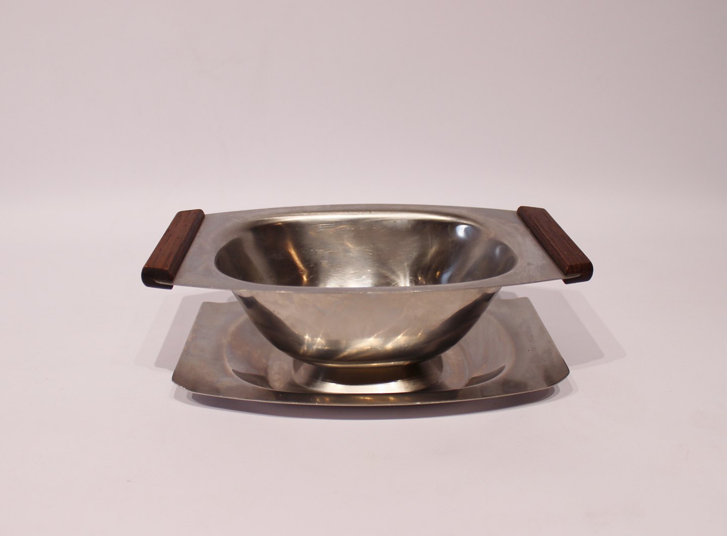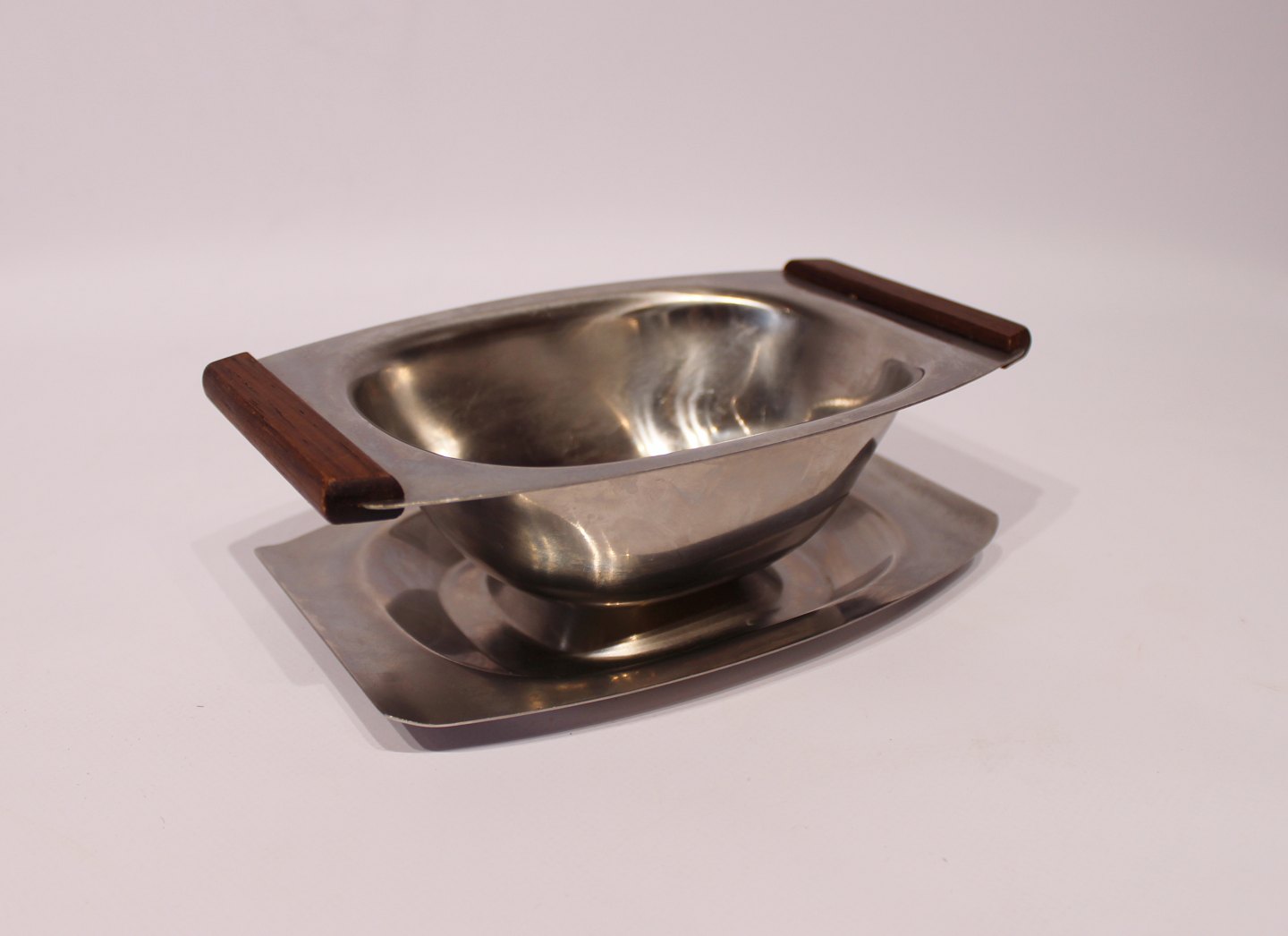 Sovseskål i rustfrit stål og teak håndtag, af Dansk design fra 1960erne.