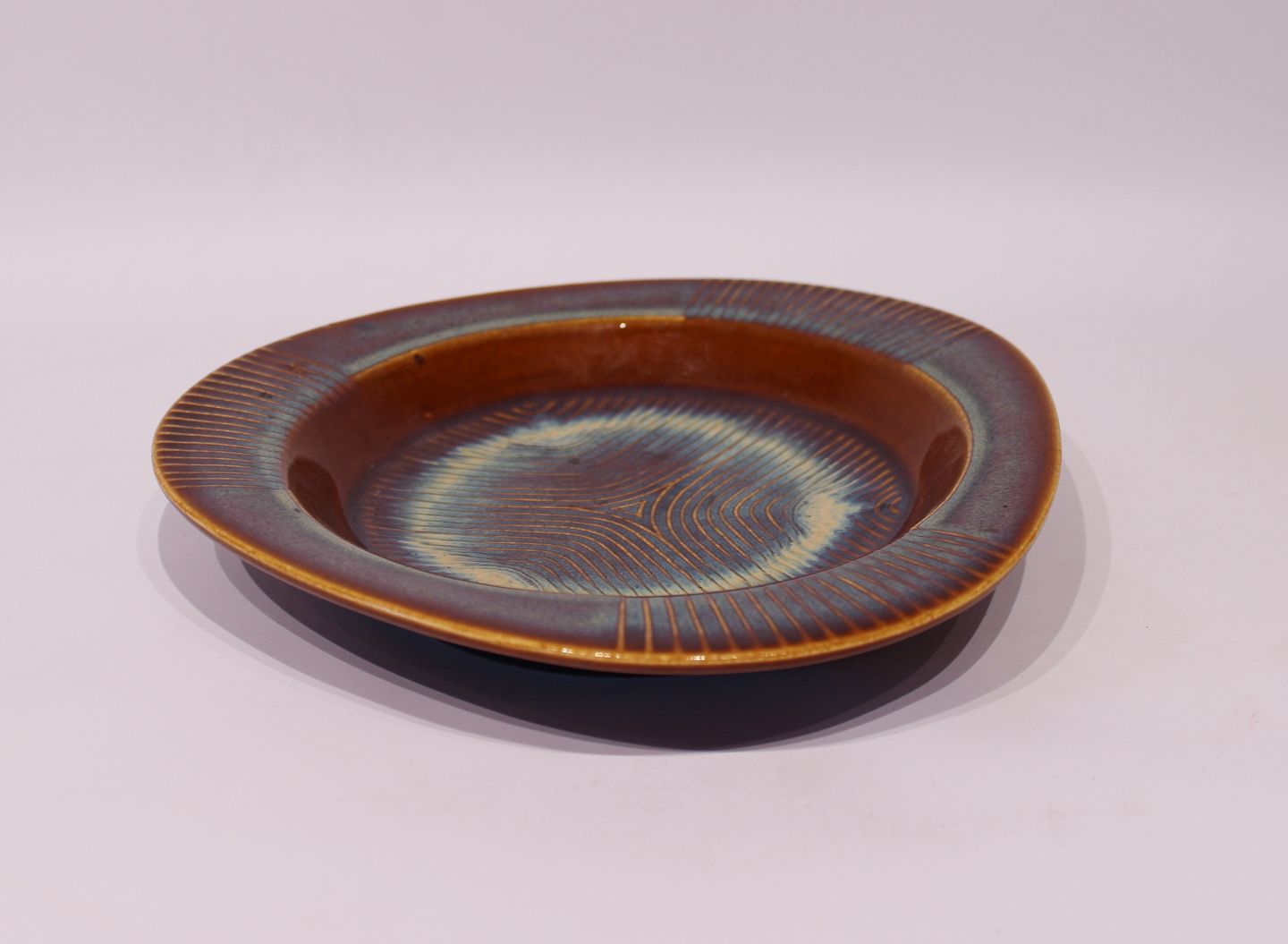 SoldCeramic dish with brown and blue glaze by Søholm, no.: 2123.