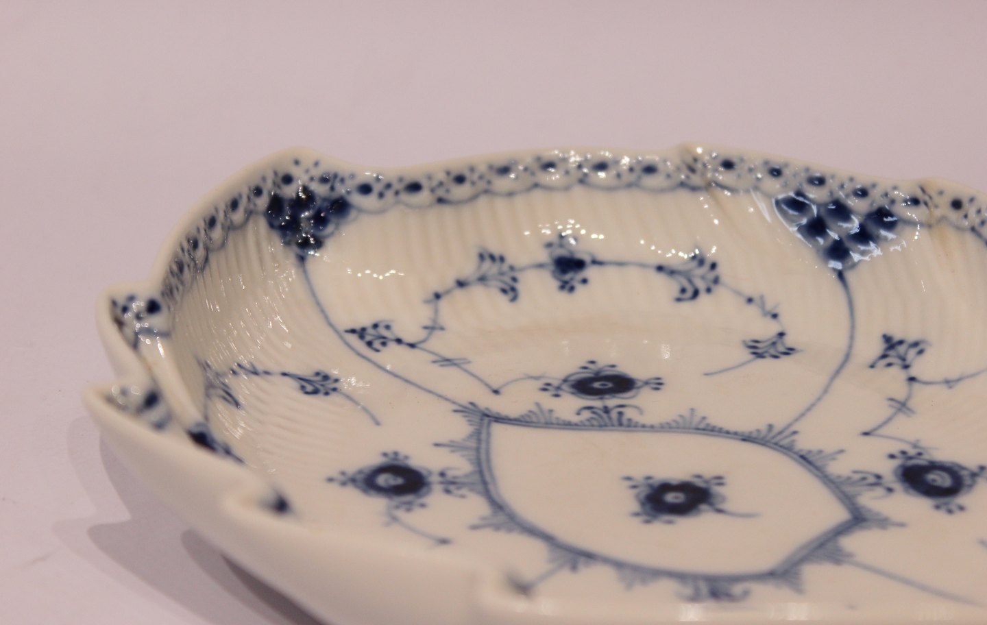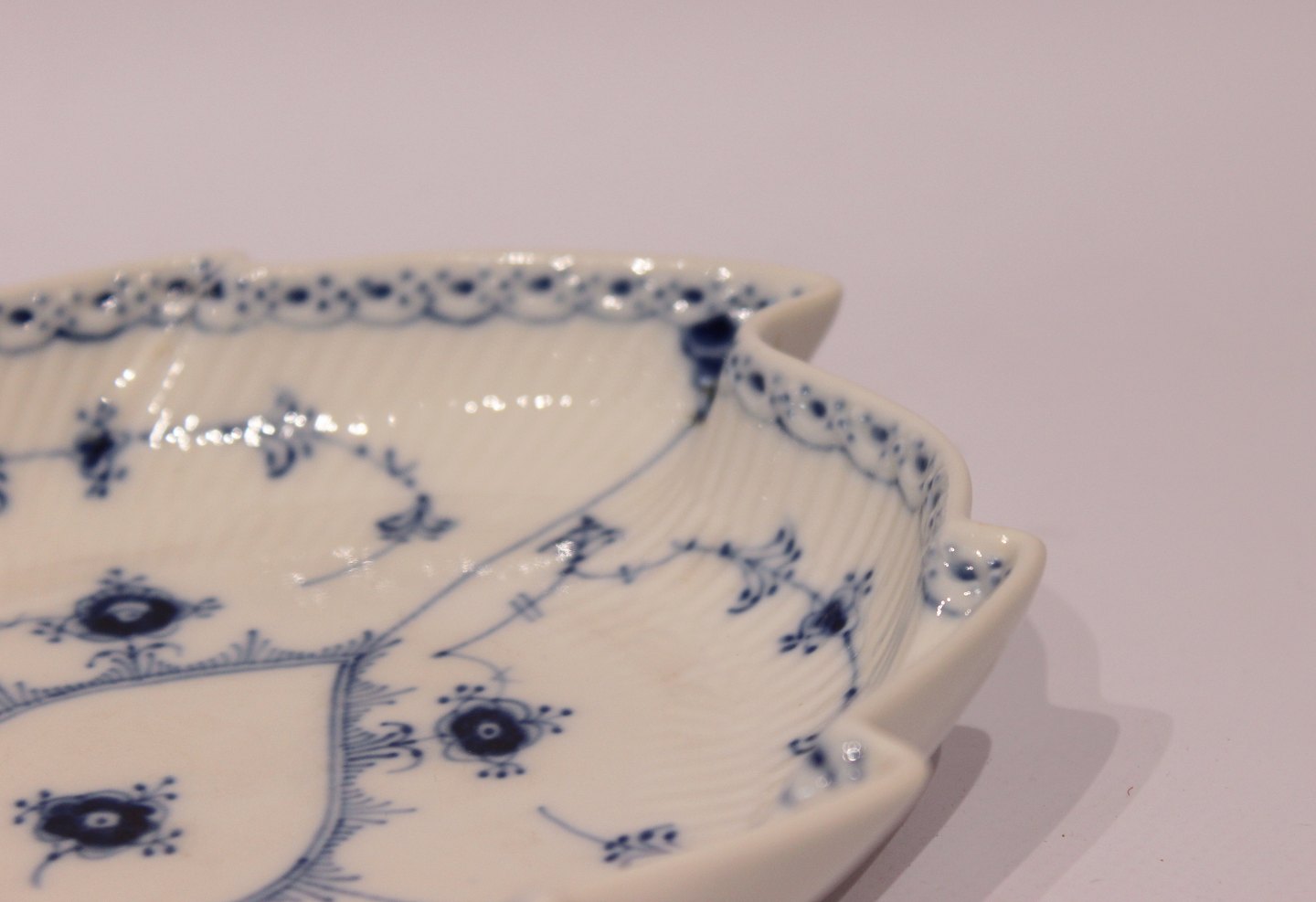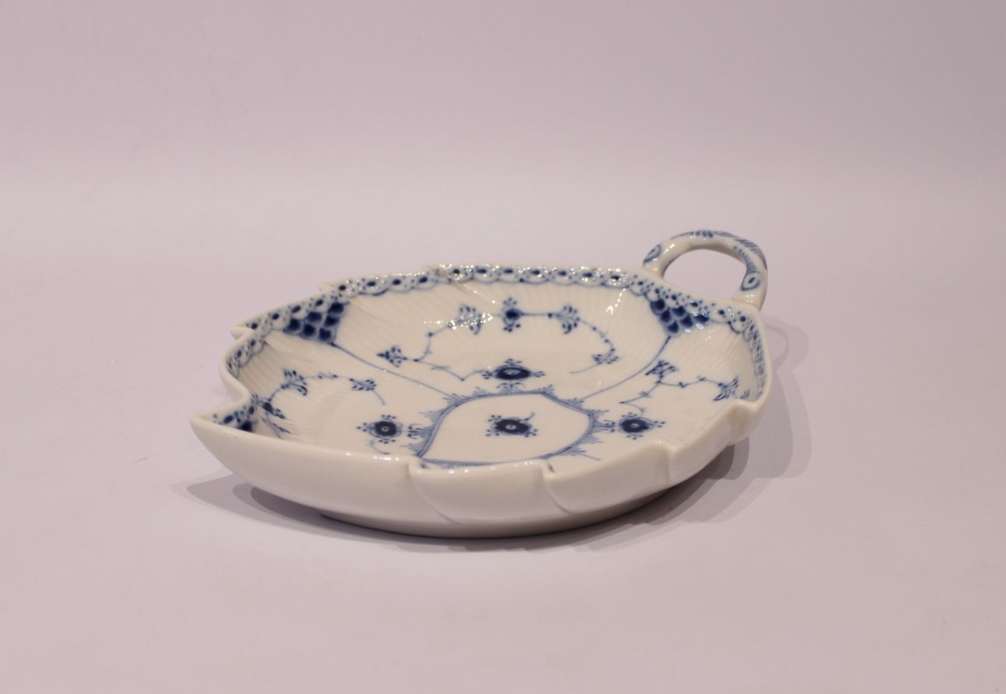 SoldRoyal Copenhagen blue fluted leaf shaped cake dish, #1/548.