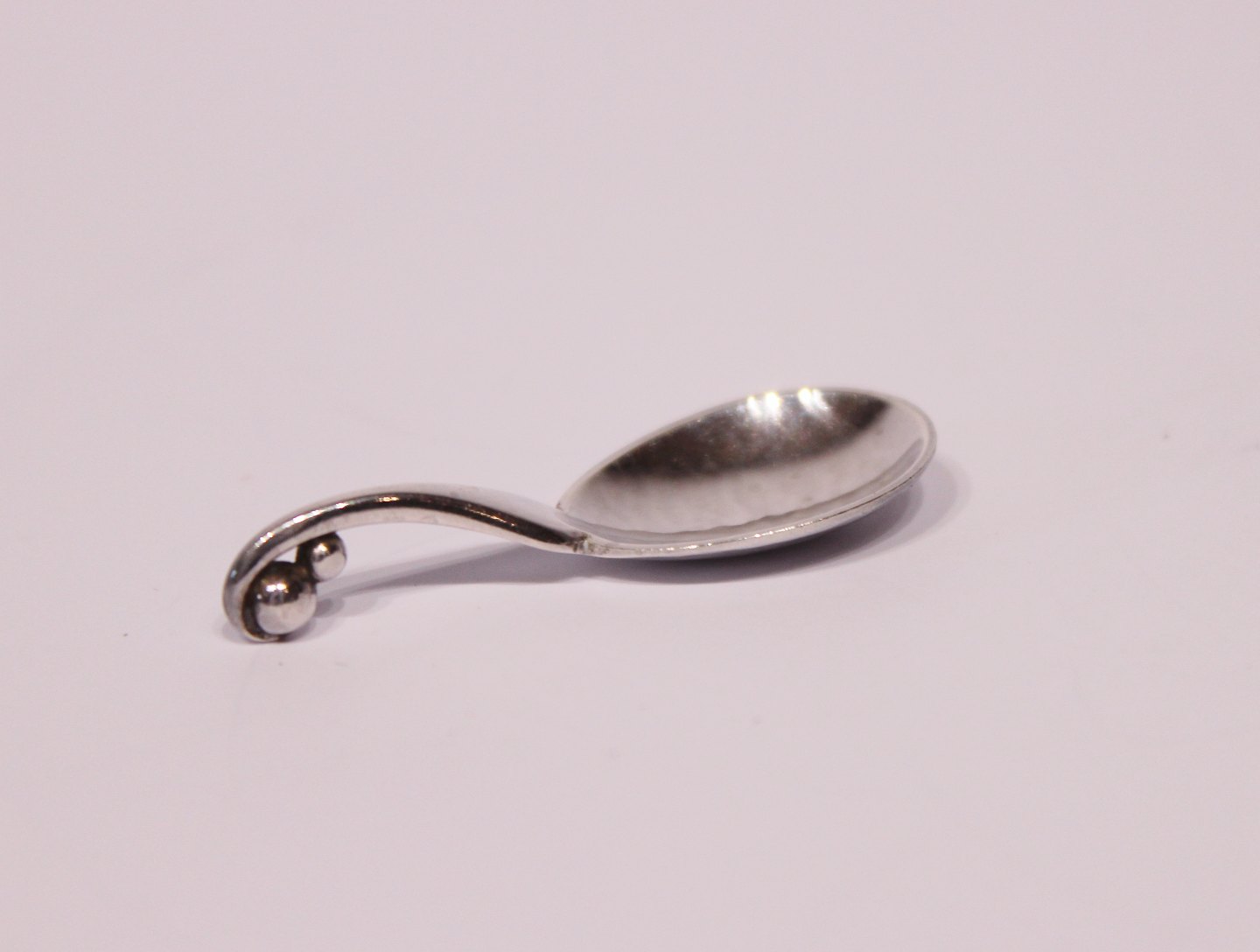 Set of salt jar and salt spoon, no.: 110, in 925 sterling silver by Georg Jensen.