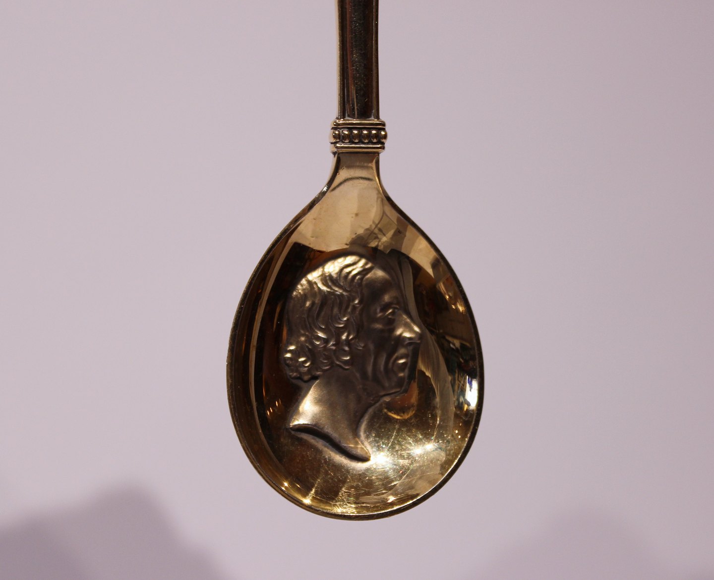 H.C. Andersen pragtske, "Kejserens nye klæder", i forgyldt 925 sterling sølv, stemplet SM, Denmark, 1978.