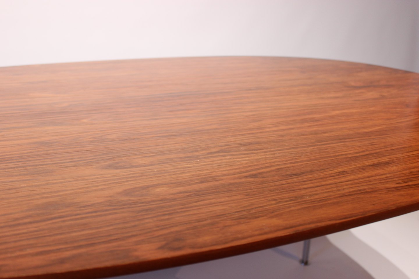Super Ellipse table in rosewood designed by Piet Hein, Arne Jacobsen and Bruno Mathsson in 1968 and manufactured by Fritz Hansen in 1983. The table is in great vintage condition and with legs of chrome.