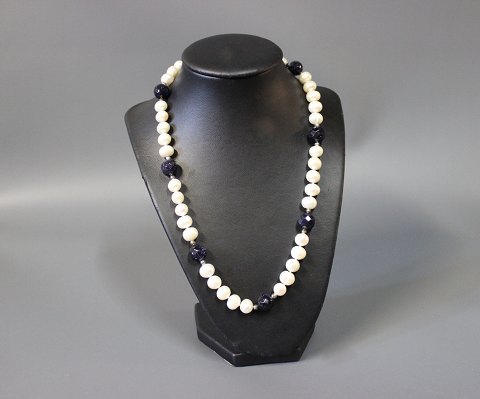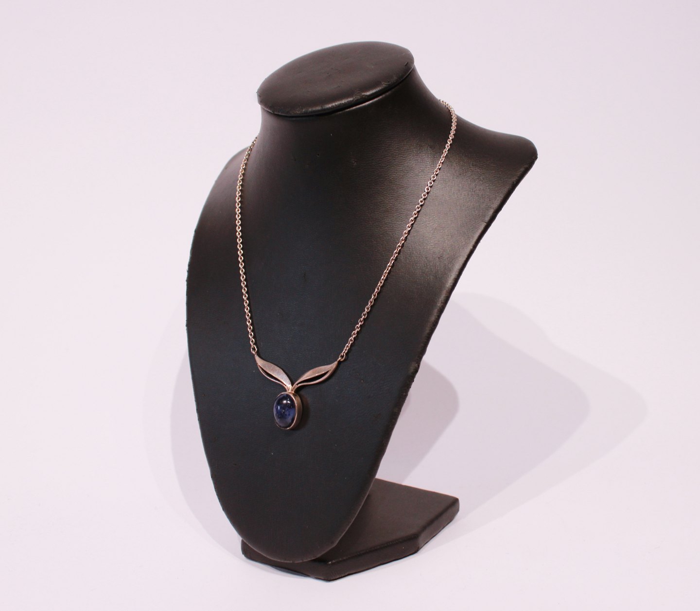 Halskæde i 925 sterling sølv med vedhæng af Lapis Lazuli sten, stemplet Alton.