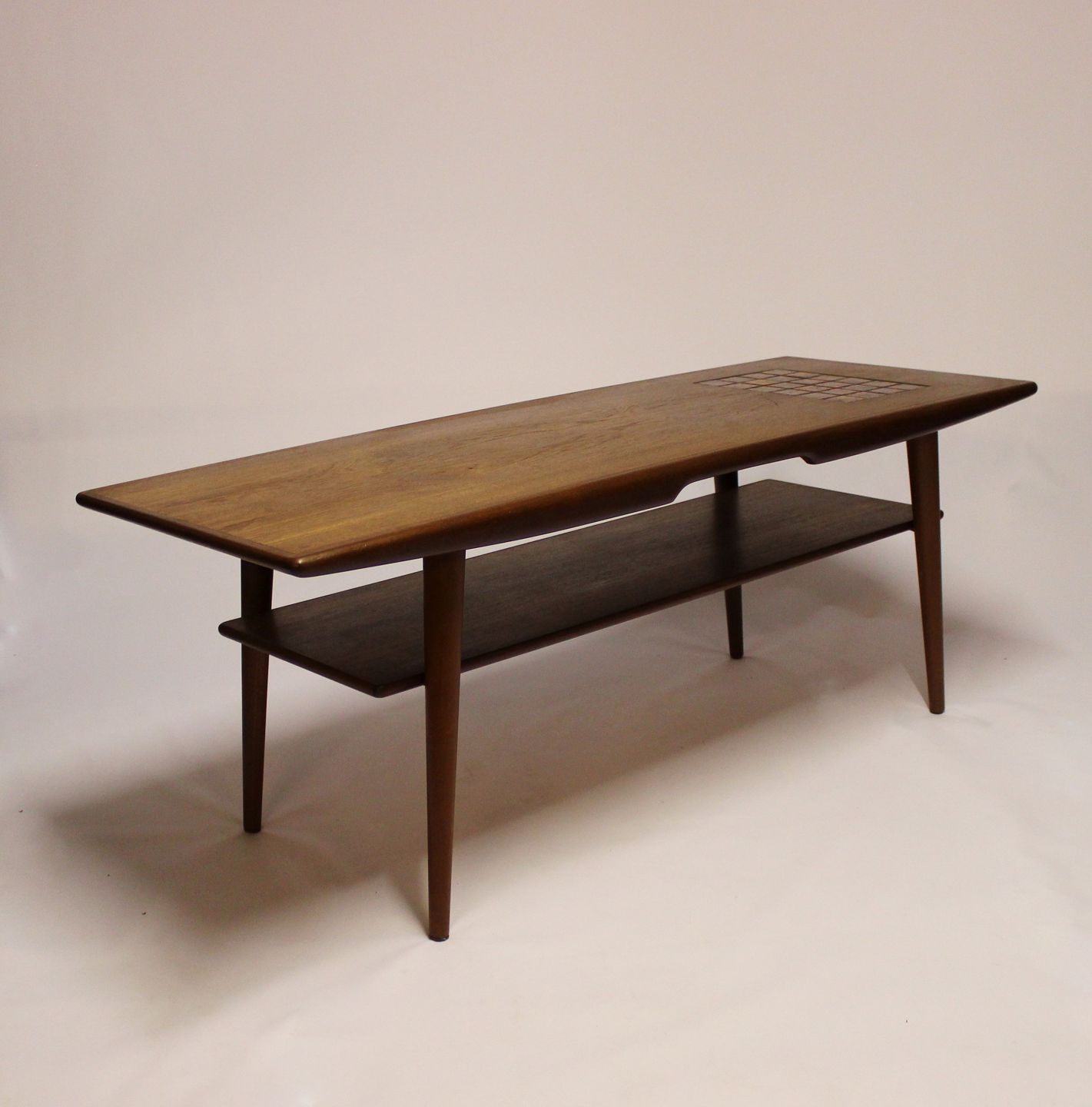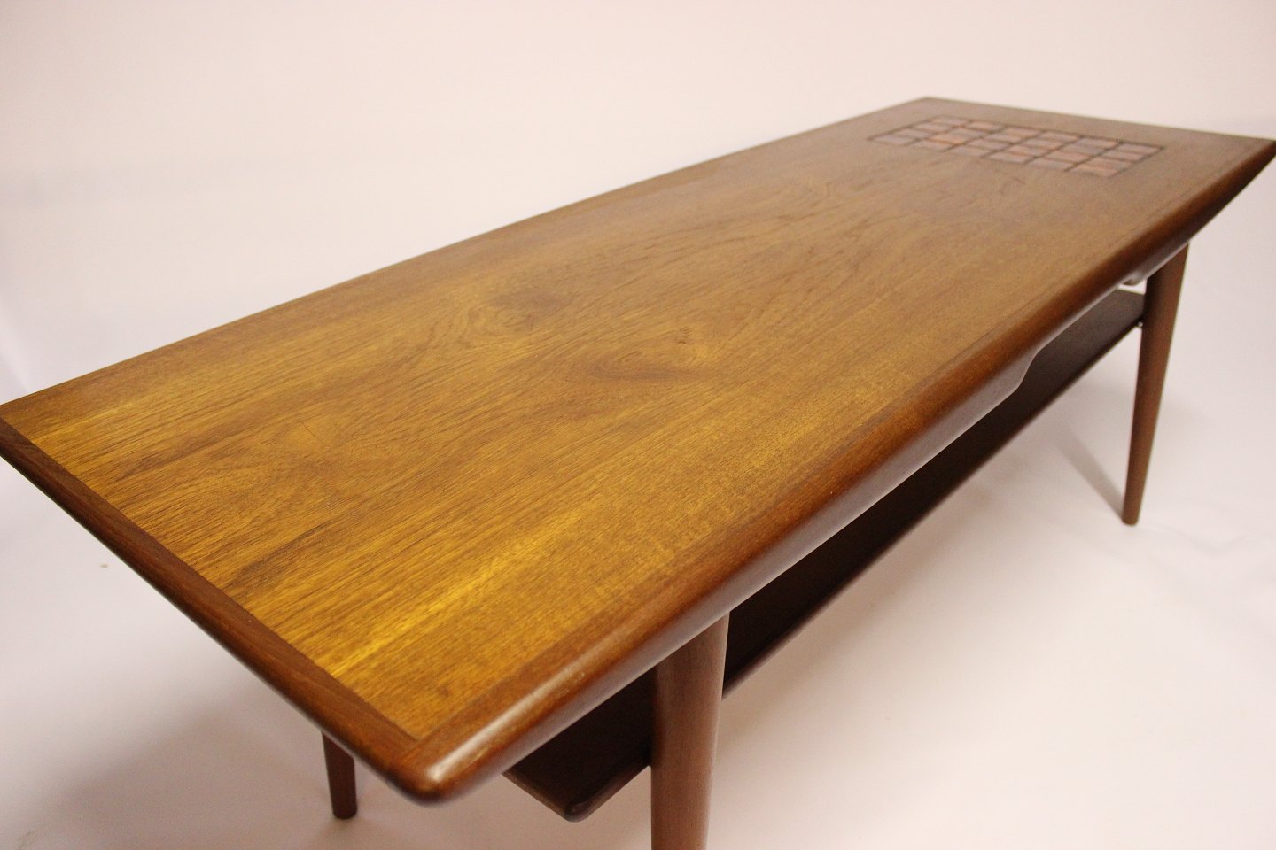 Coffee table in teak with tiles in dark colors of danish design from the 1960s. The table is in great condition.