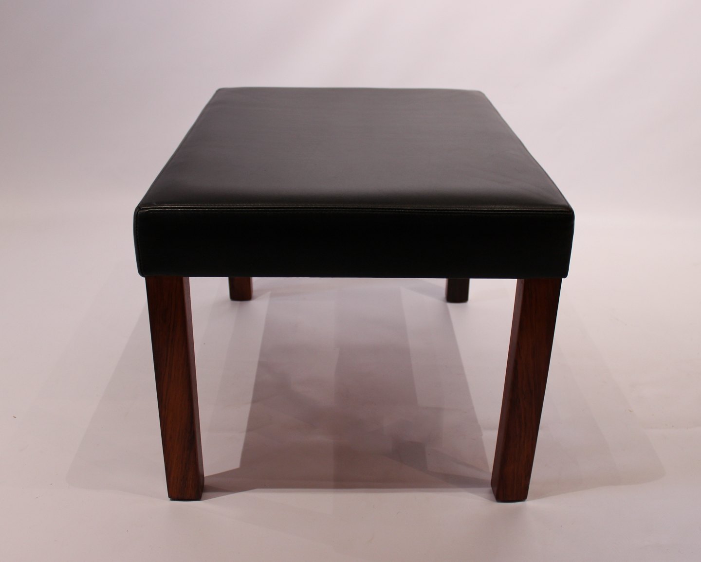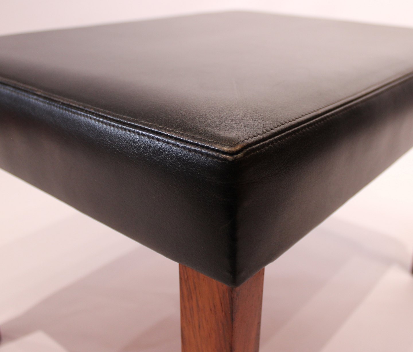 Stool with legs of rosewood and upholstered with black leather of danish design from the 1960s. The stool is in great vintage conditon.