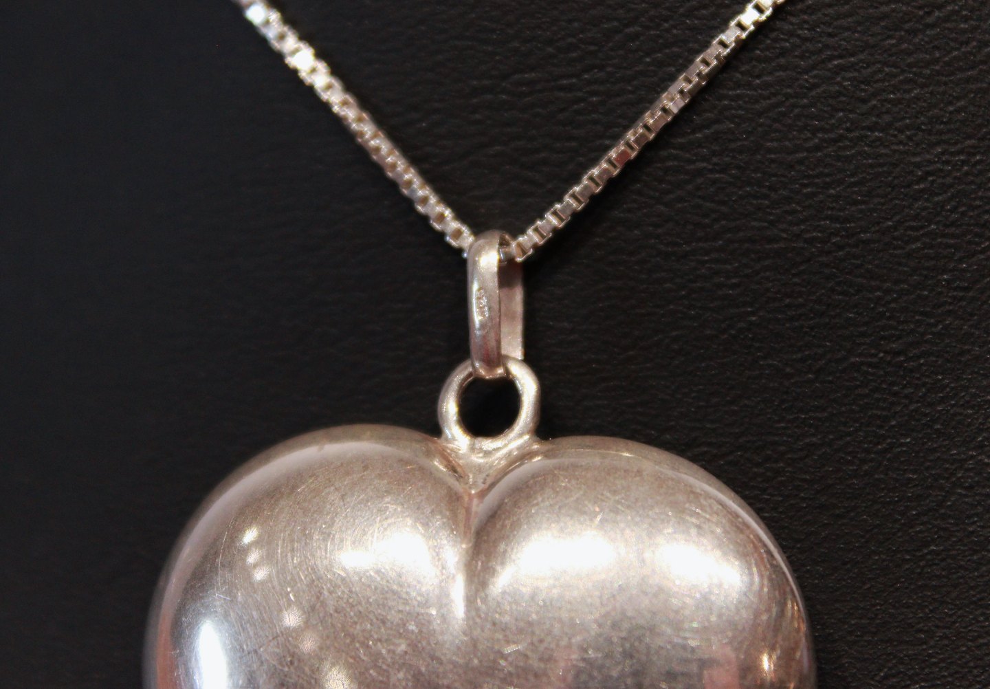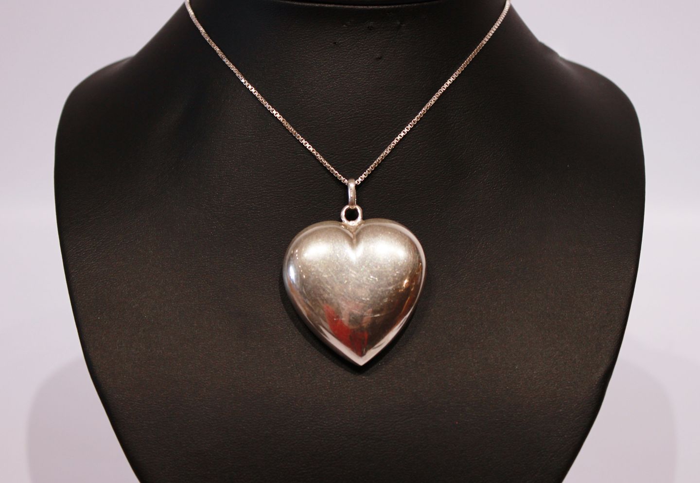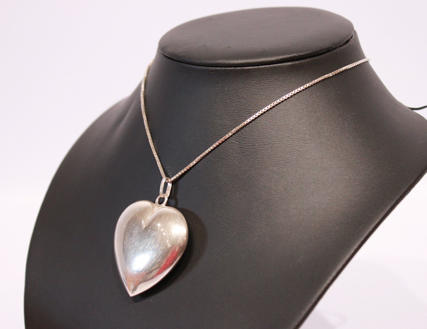 Large pendant in the shape of a heart in 925 sterling silver. Similar chain can be purchased separately.