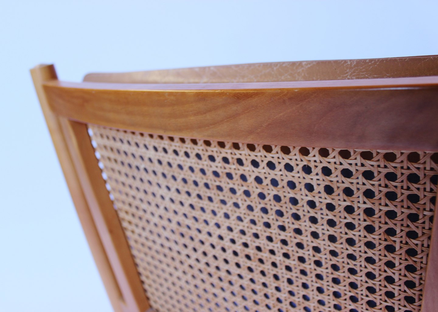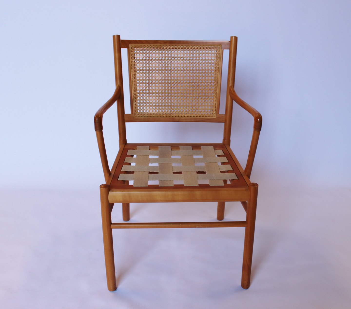 SolgtArmstol, model PJ-301, i mahogni og hynder af lysebrunt patineret læder designet af Ole Wanscher og fremstillet af PJ Møbler i 1960erne.