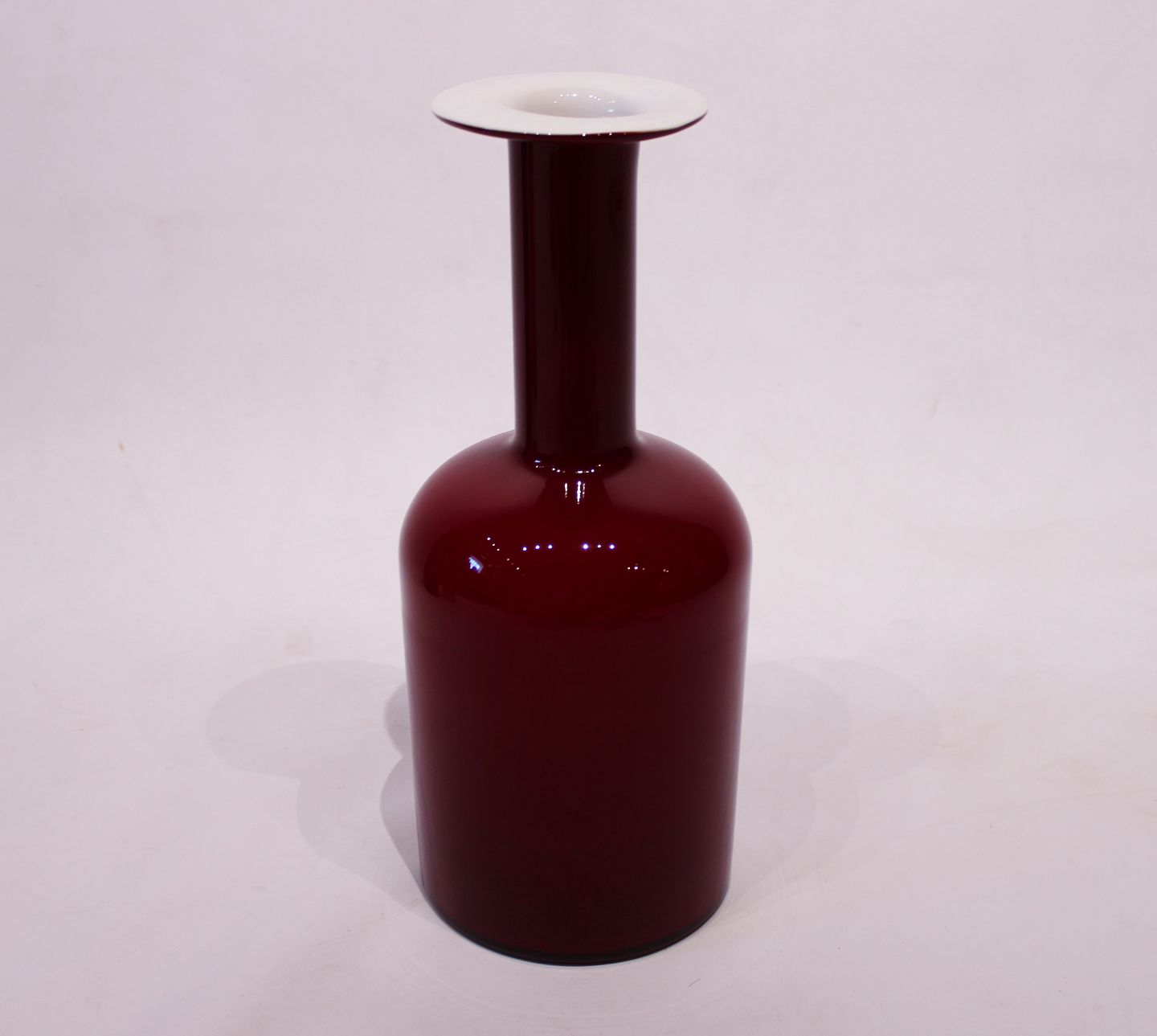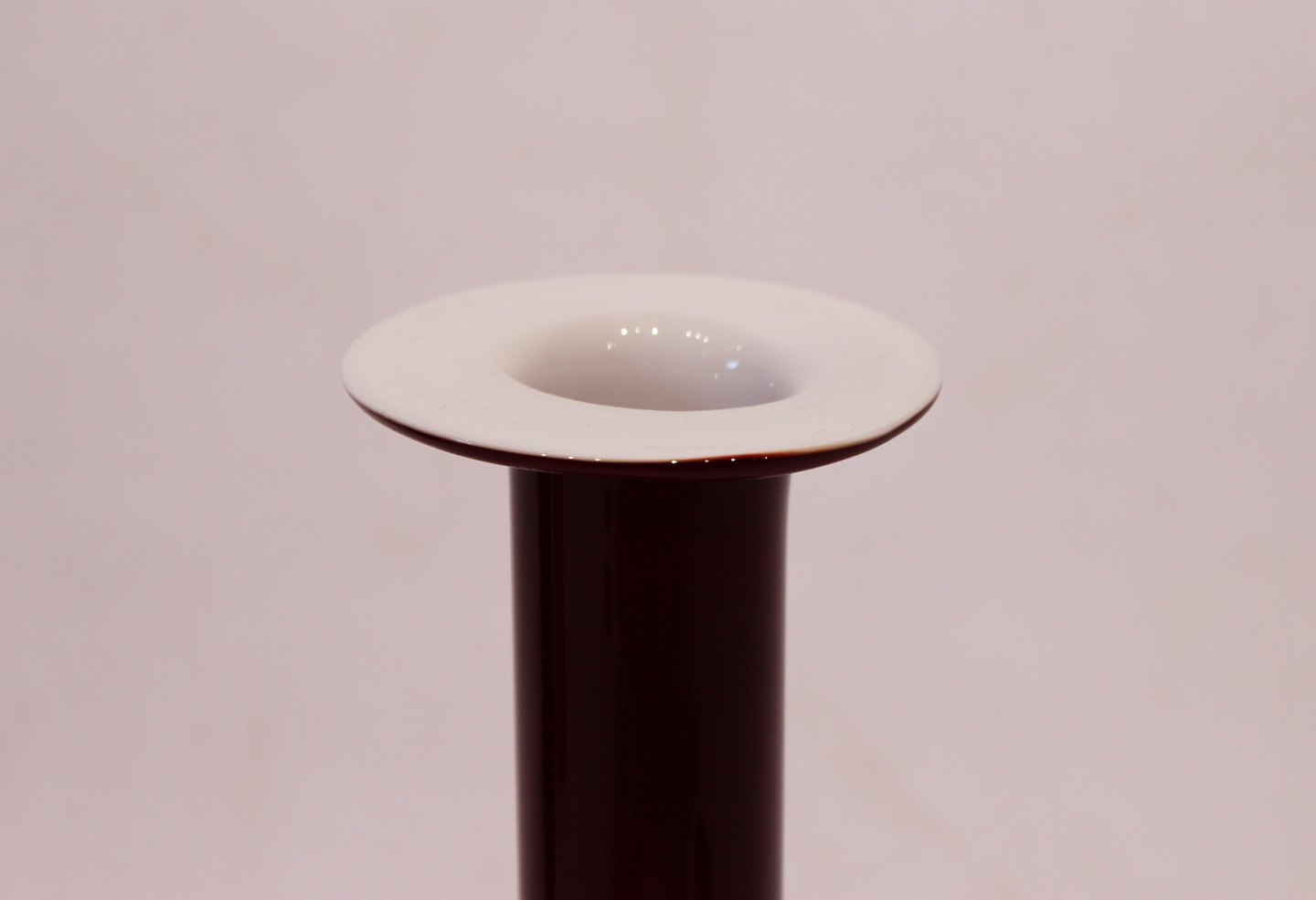 SoldLarge bordeaux glass vase with white opal glass on the inside by Otto Brauer for Holmegaard.