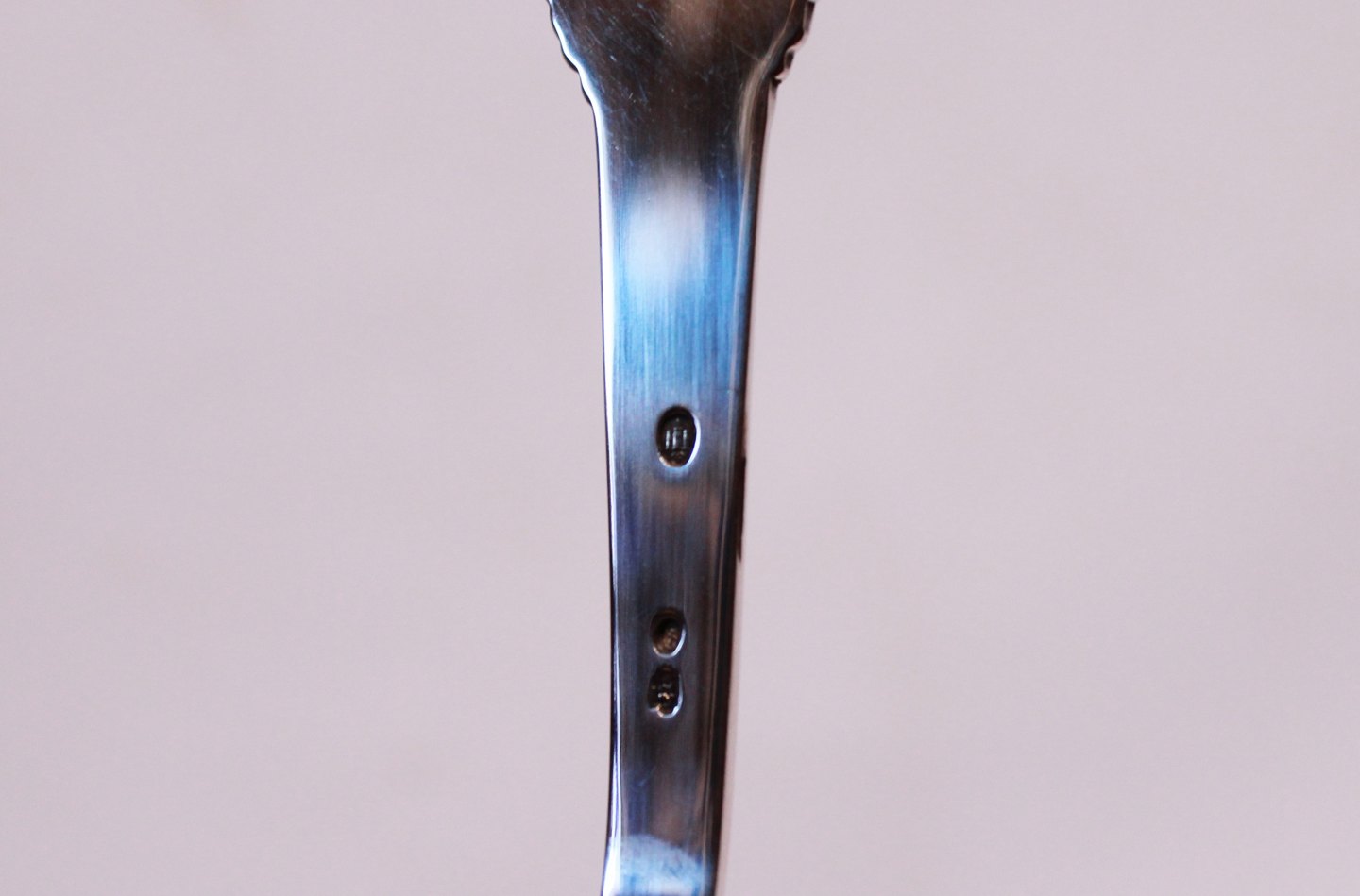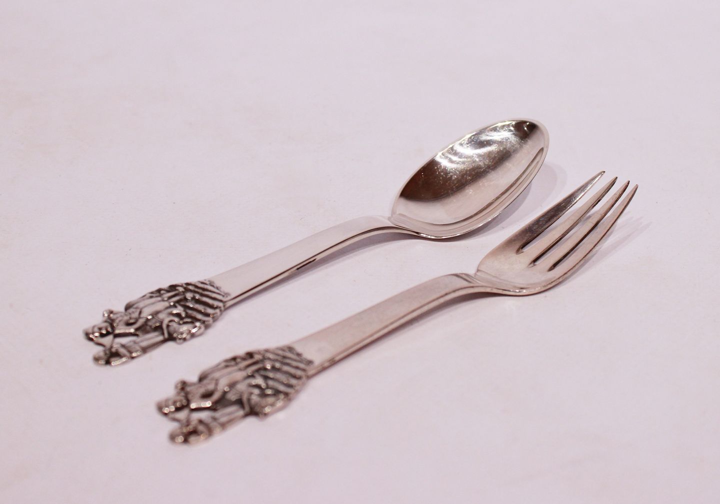 SoldSet of children's spoon and fork with motif of H.C. Andersen's fairytale "Little Claus and Big Claus.