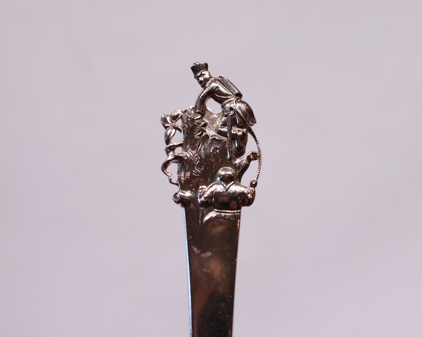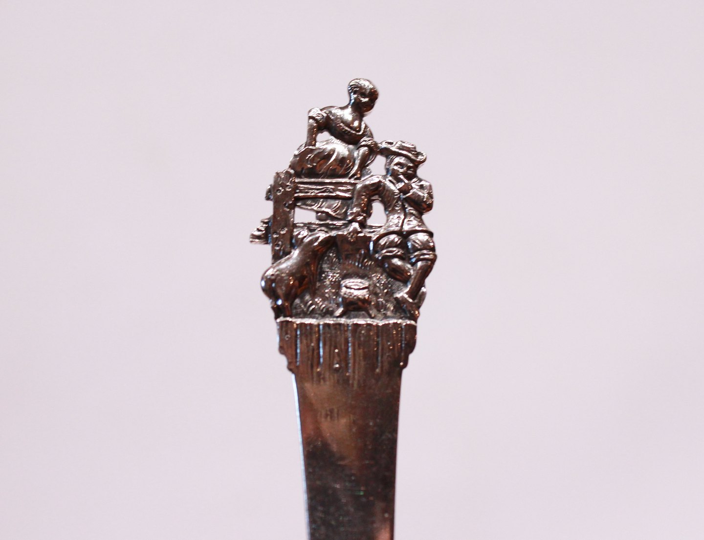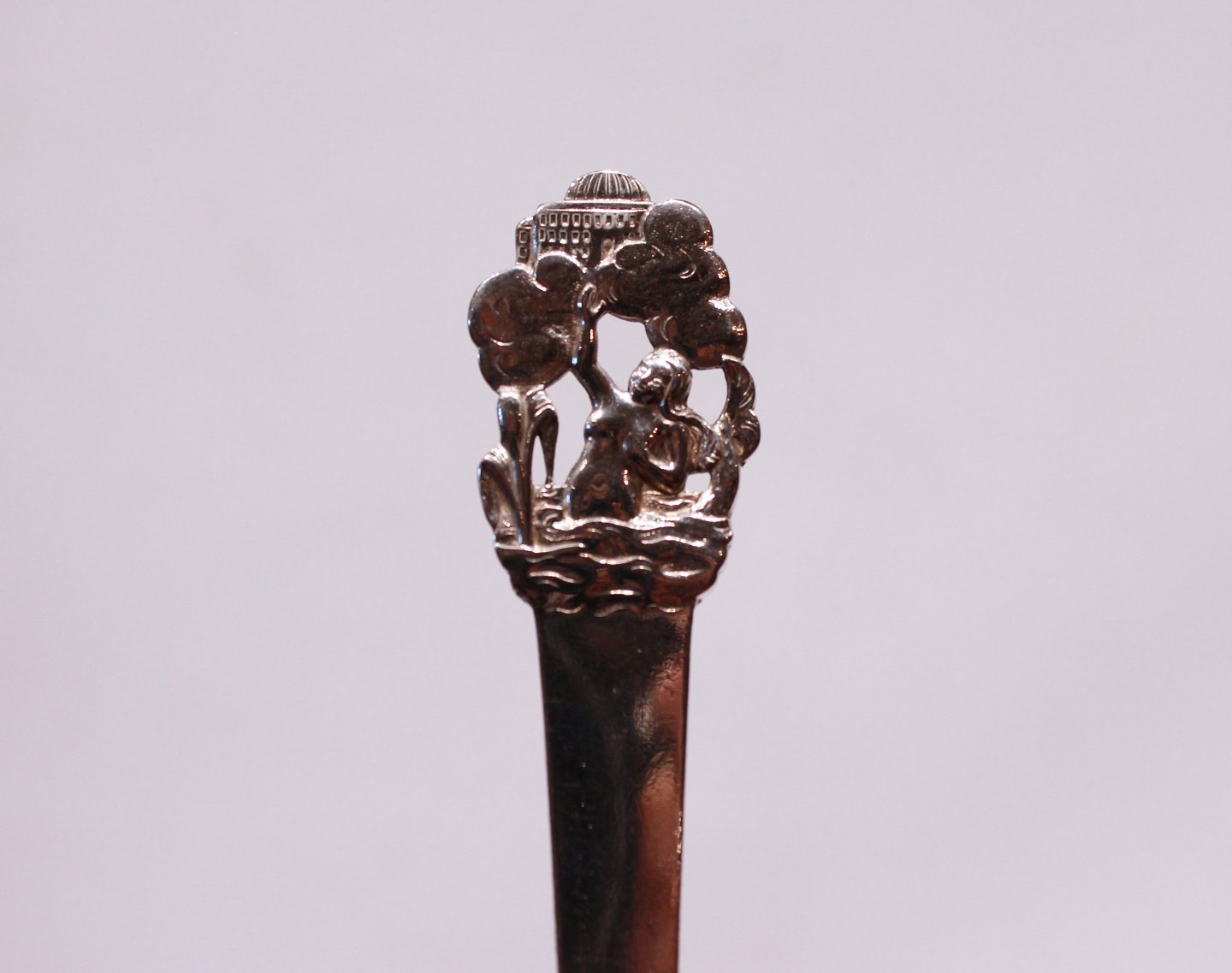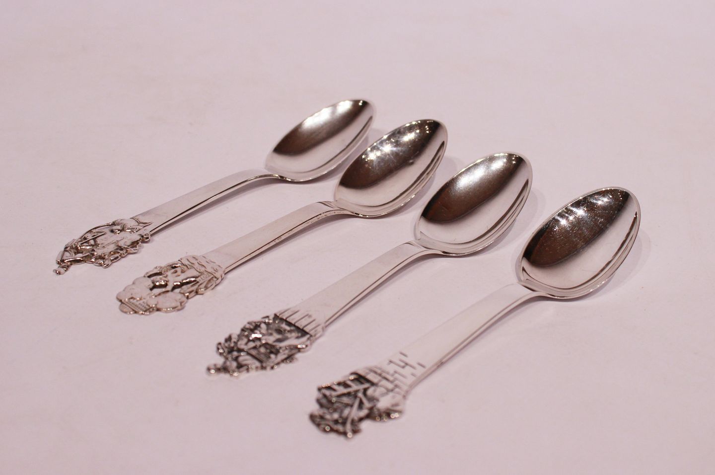 Children's spoons with different motives of H.C. Andersen's fairytales; "The Shepherdess and the Chimney-Sweep", "The Swineherd" - Sold, "The Little Mermaid" and "The Tinder Box".