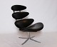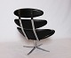 Set of two Corona easy chairs, model EJ 5, designed by Poul M. Volther in 1964 and manufactured at Erik Jørgensen in the 1980s. The chair is upholstered in Black Cava leather.