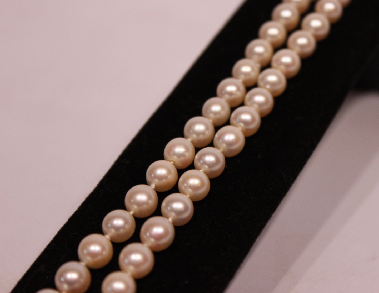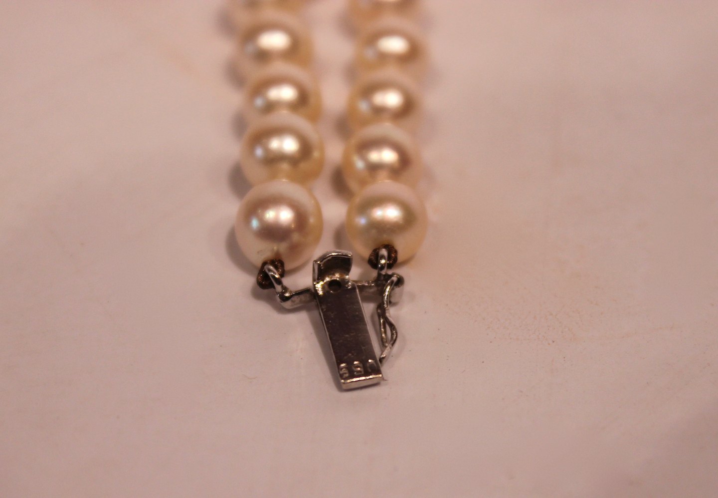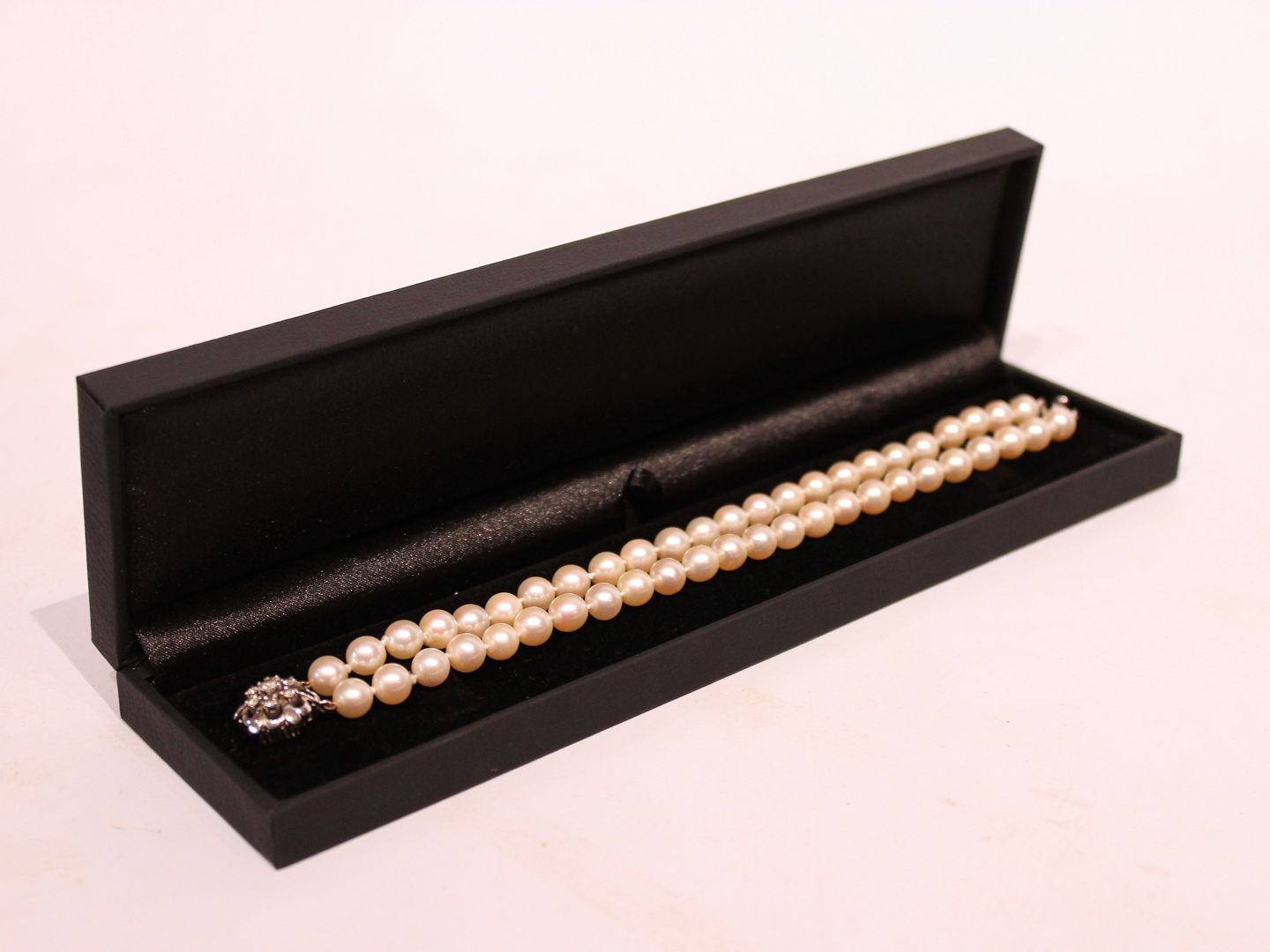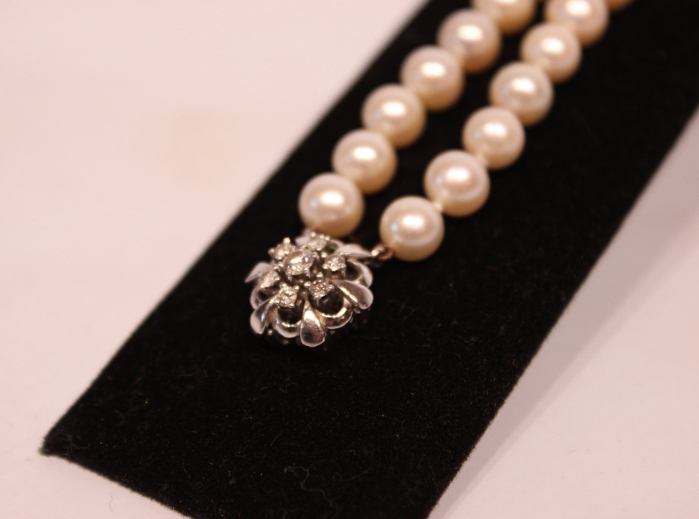 Armbånd af kulturperler med lås i 14 kt. hvidguld og brillianter 7 stk ialt