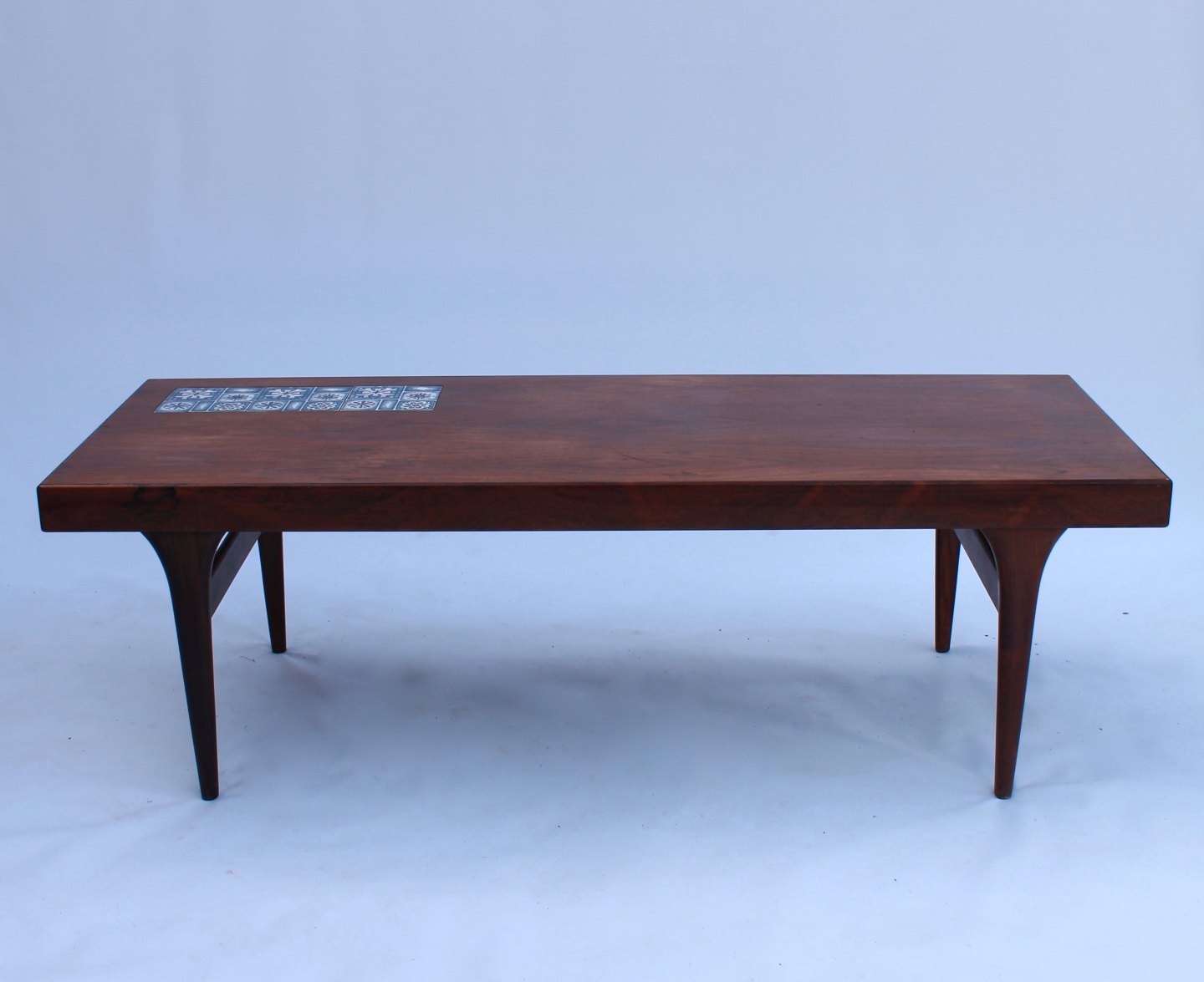 Coffeetable in rosewood with Royal Copenhagen tiles designed by Johannes Andersen and manufactured by Silkeborg Furniture Factory in 1960s. The table is in great vintage condition.