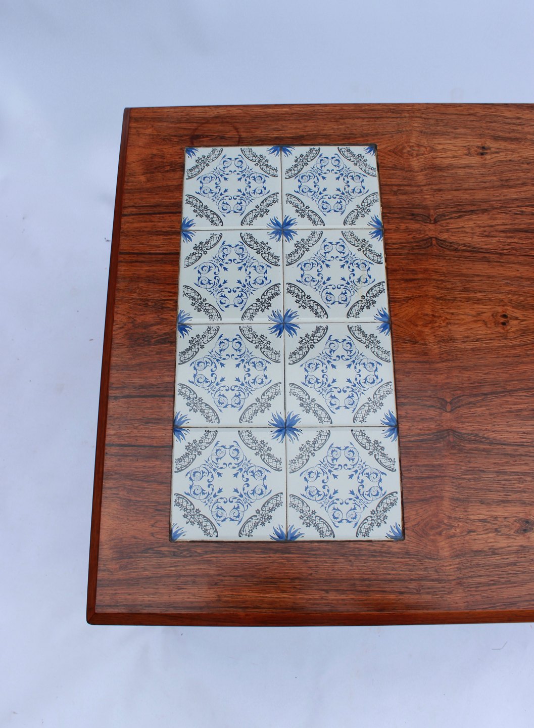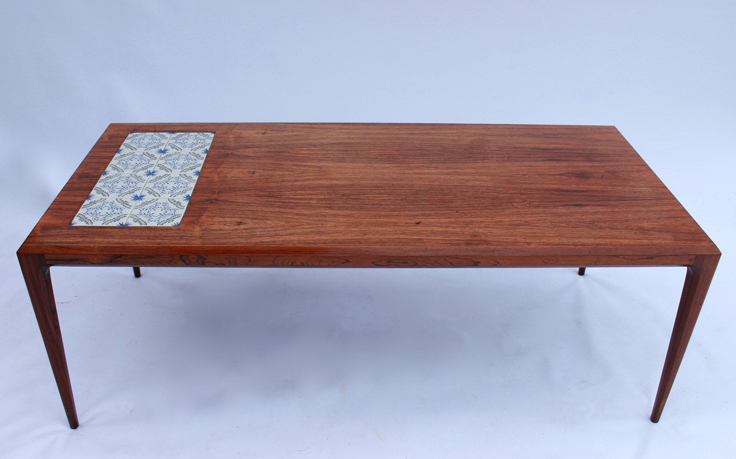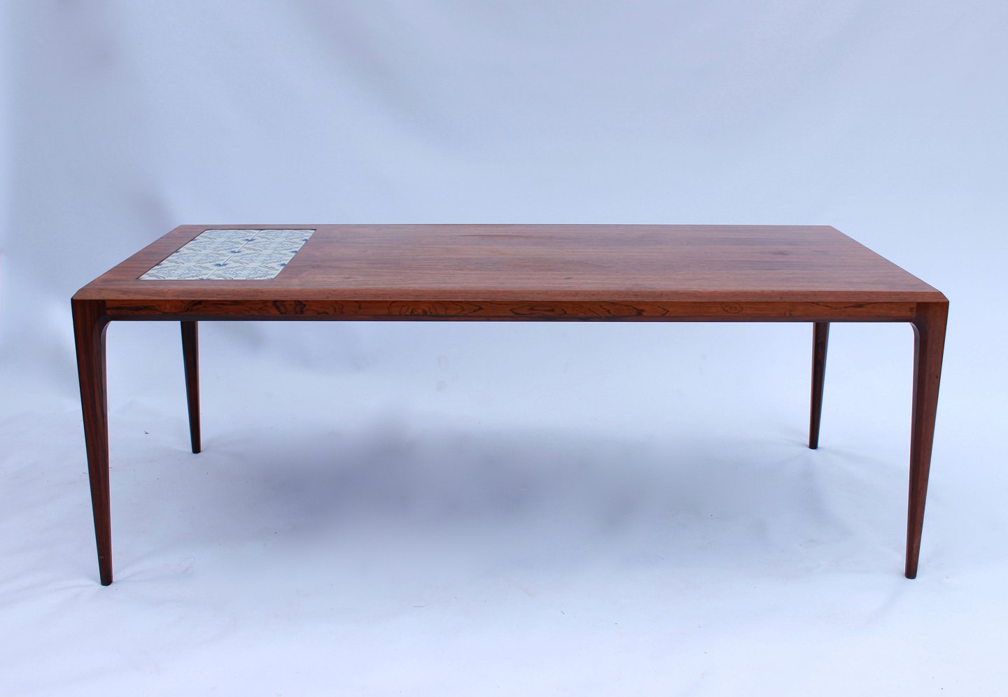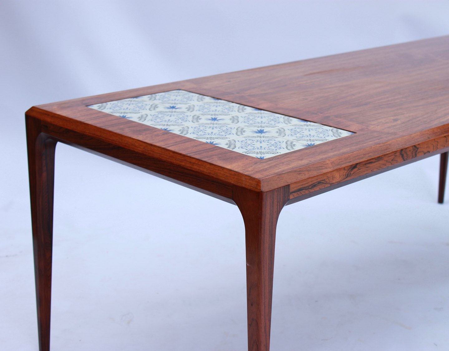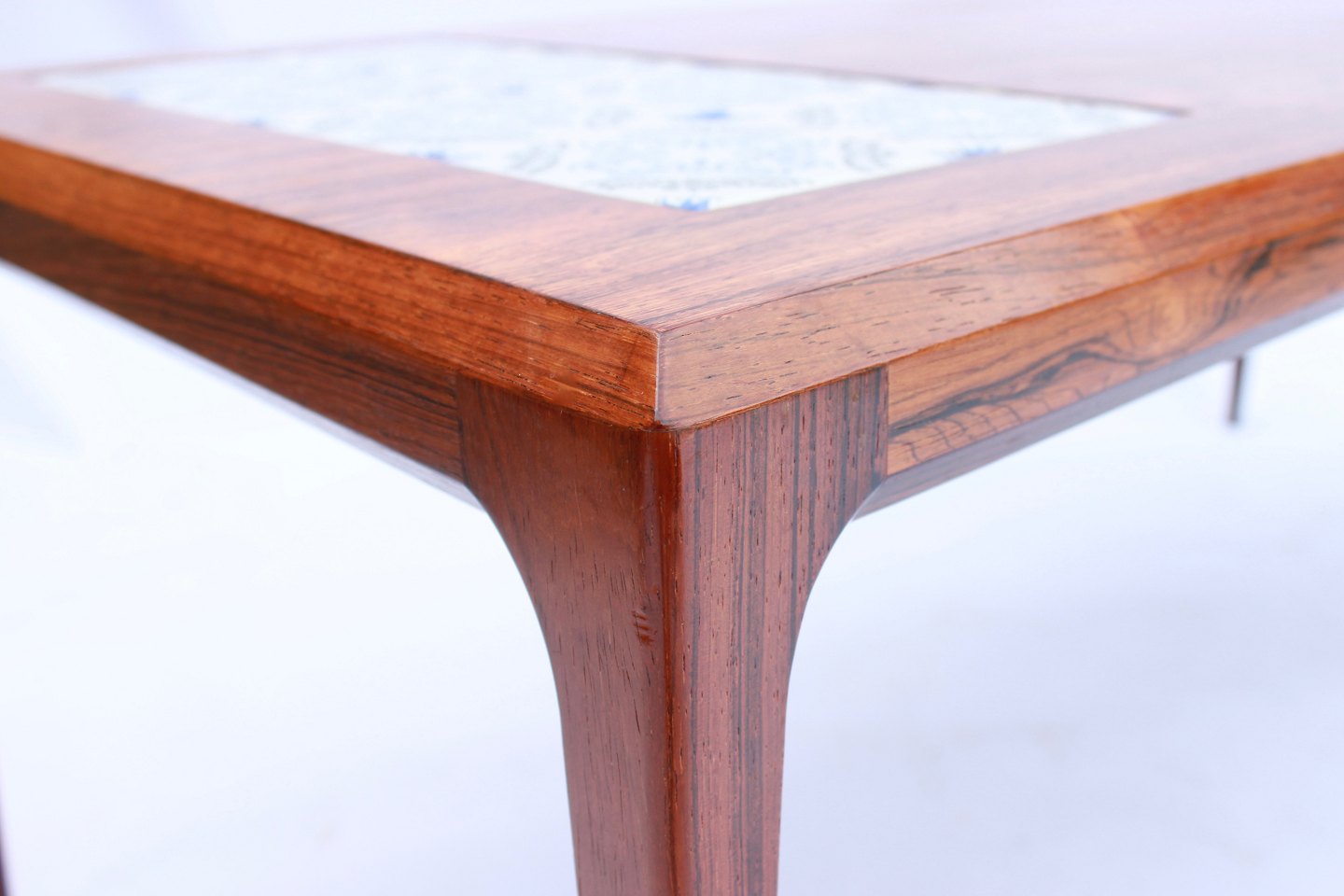 SoldCoffee table in rosewood with Royal Copenhagen tiles designed by Johannes Andersen and manufactured by Silkeborg Furniture factory in the 1960s. The table is in great vintage condition.