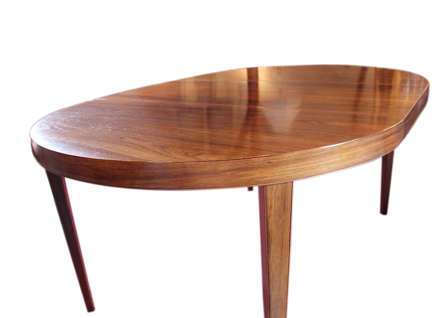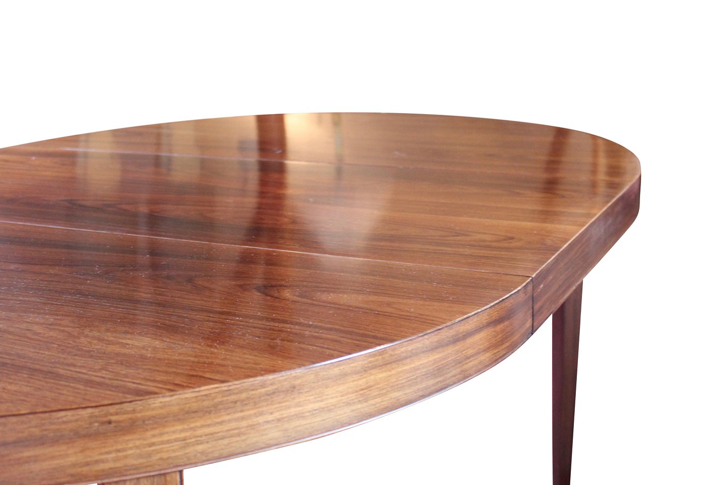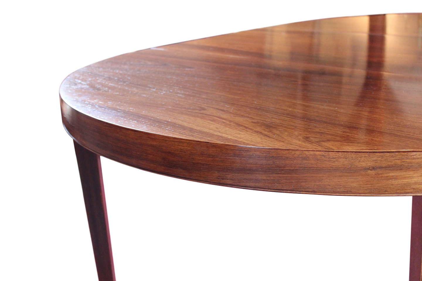 Large dining table with 3 extension leaves of rosewood designed by Severin Hansen for Haslev furniture factory in the 1960s. The table is in great vintage condition.