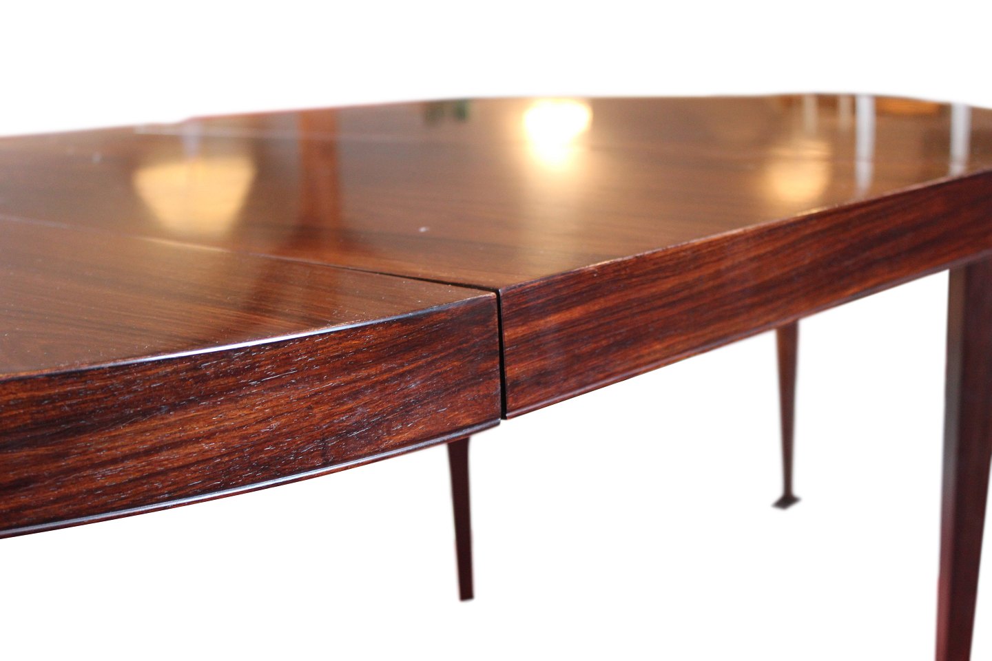 Large dining table with 3 extension leaves of rosewood designed by Severin Hansen for Haslev furniture factory in the 1960s.