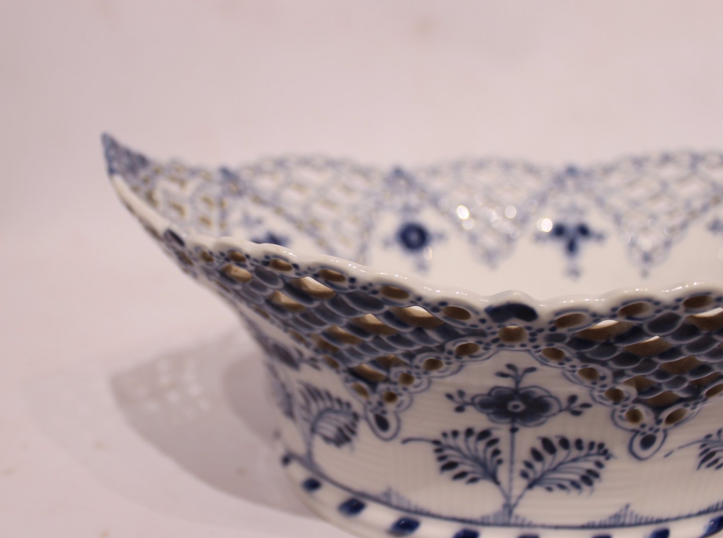 SoldRoyal Copenhagen blue fluted lace fruit bowl, no.: 1/6501. The bowl is in great vintage condition.