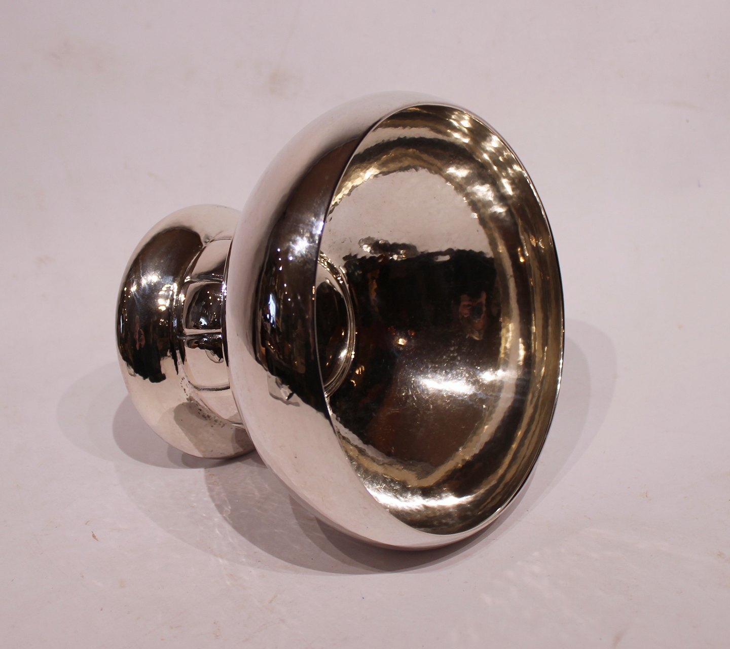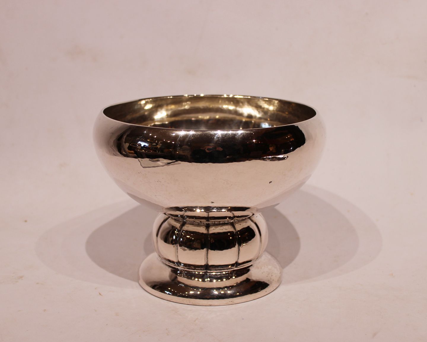 Skål på fod af tretårnet sølv og enkelt dekoreret.