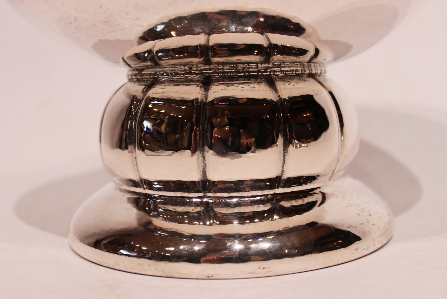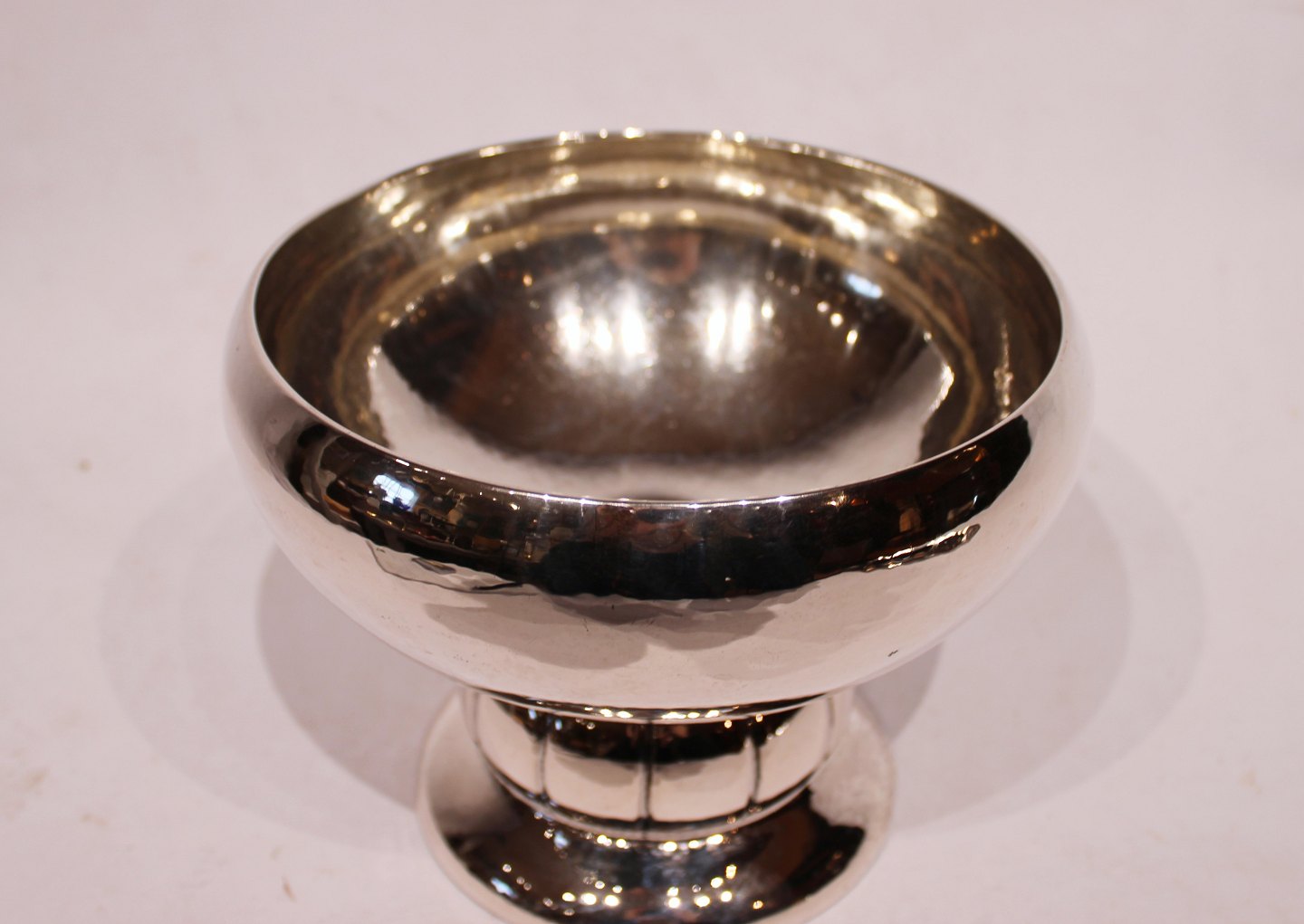 Skål på fod af tretårnet sølv og enkelt dekoreret. Skålen er i flot brugt stand.