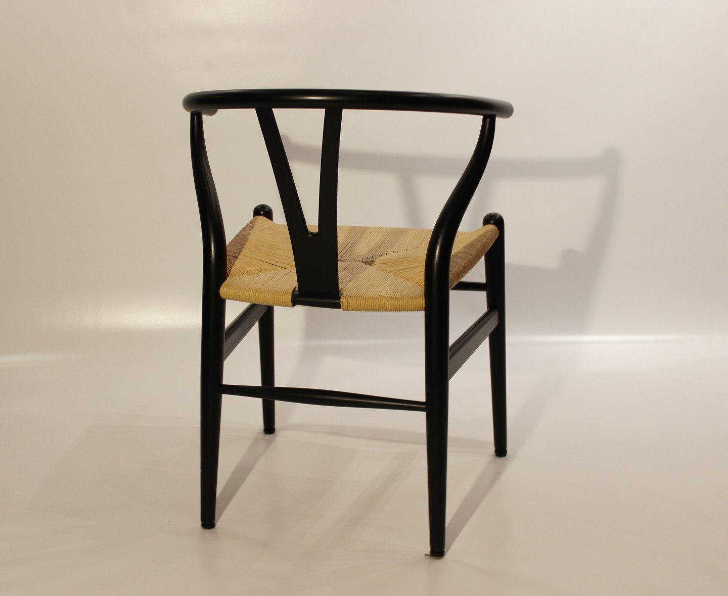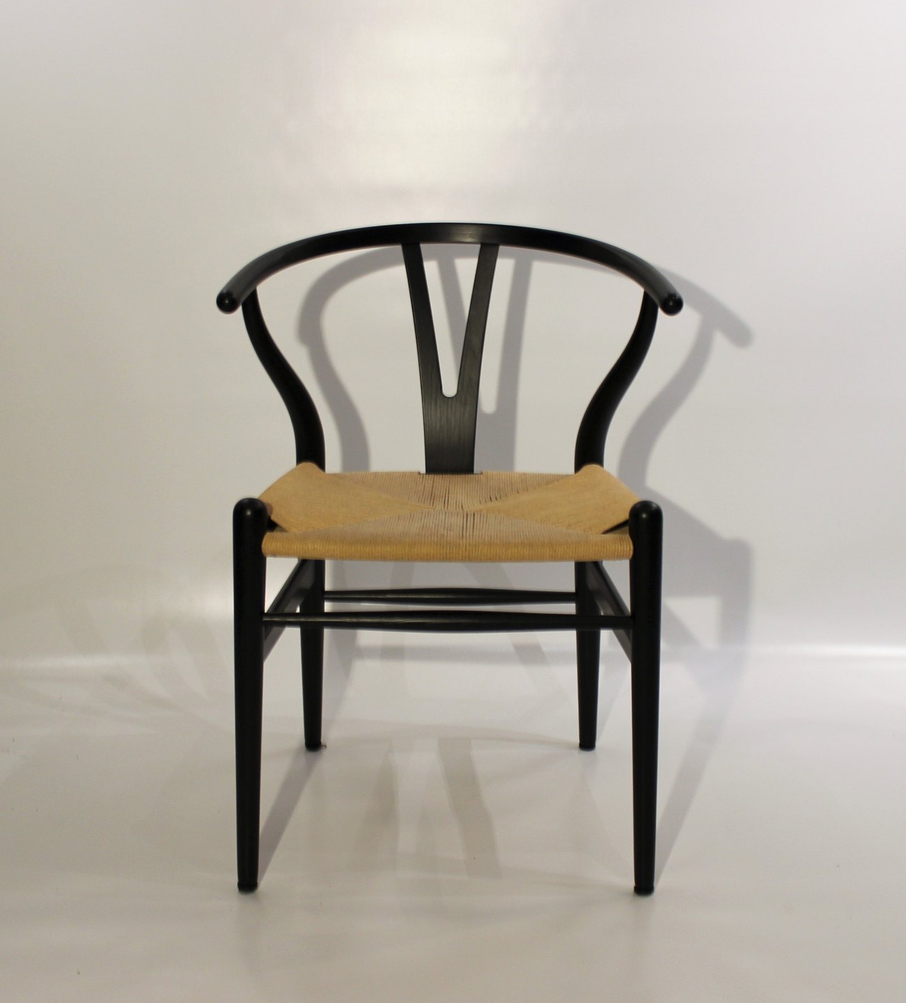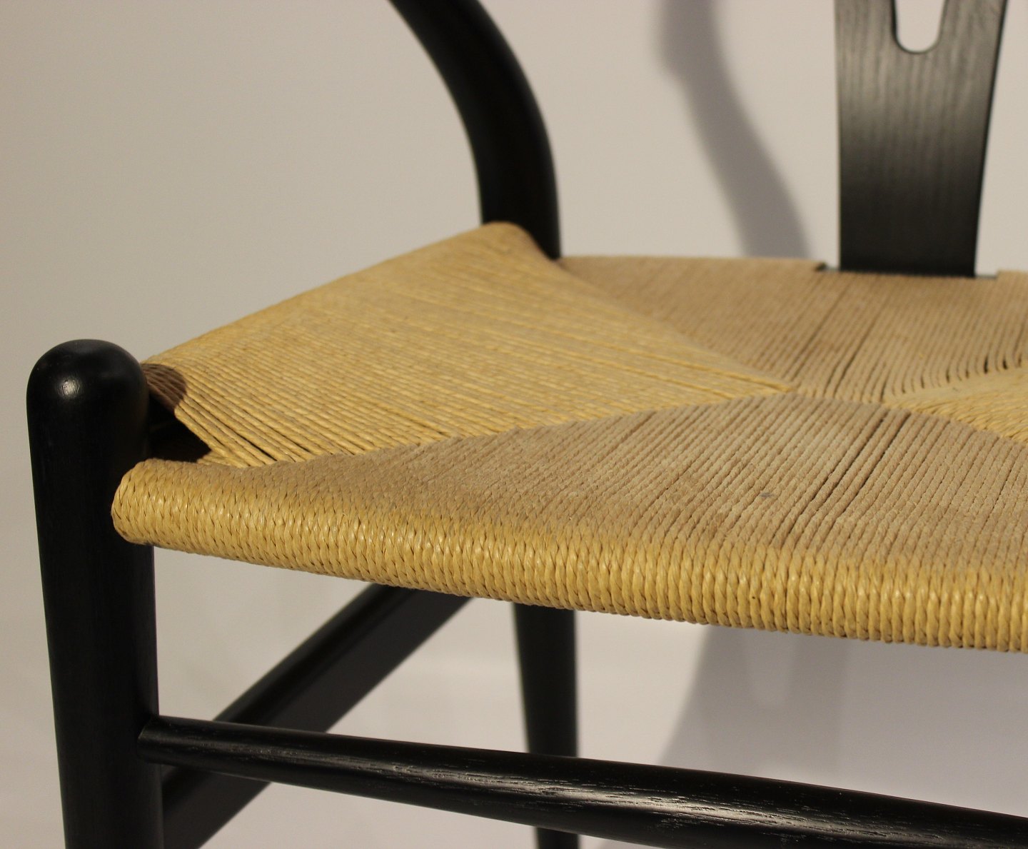 SoldA pair of wishbone chairs, Y-chair, model CH24, designed by Hans J. Wegner in the 1950s and manufactured by Carl Hansen & Son in 2008. The chairs are with papercord seat and black painted ash.