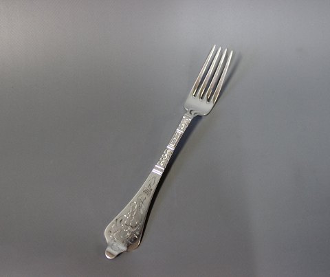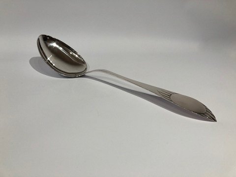 Serverings/fiske spade med rundt håndtag af andet mønster og tretårnet sølv.