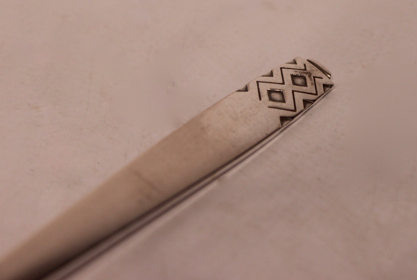 View the price in the text descriptionLunch fork and cake fork in the Rune pattern by Georg Jensen and three-towered silver.