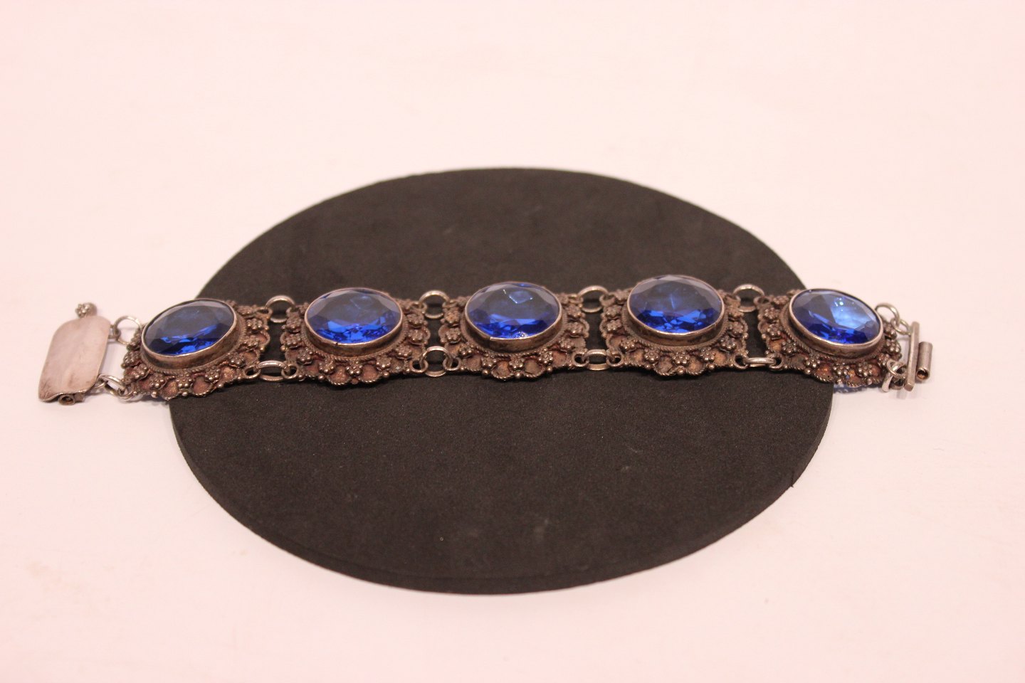 Sterling 900 bracelet with large blue stones from Jordan, stamped Jordan ST 900.