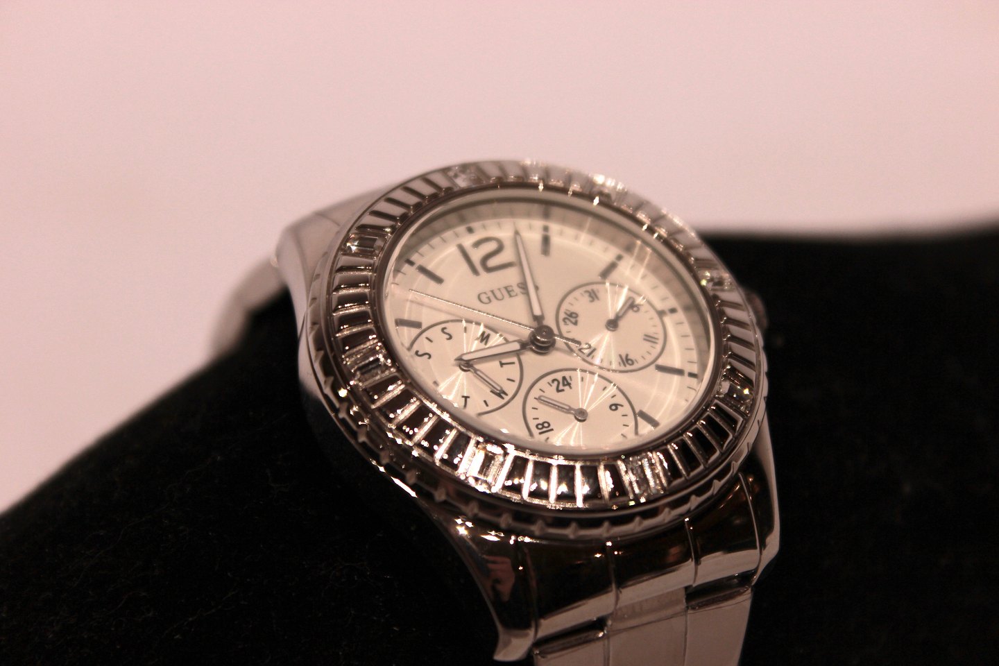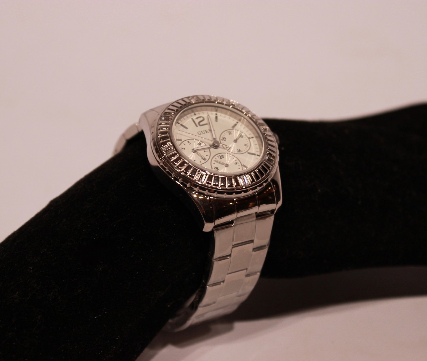 Mens quartz wristwatch of stainless steel by Guess, in perfect condition.