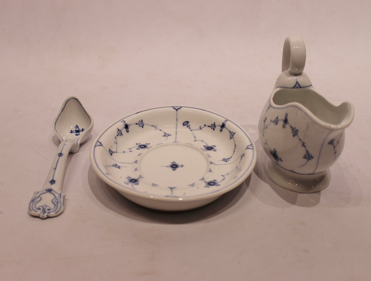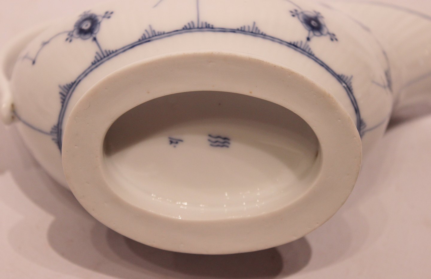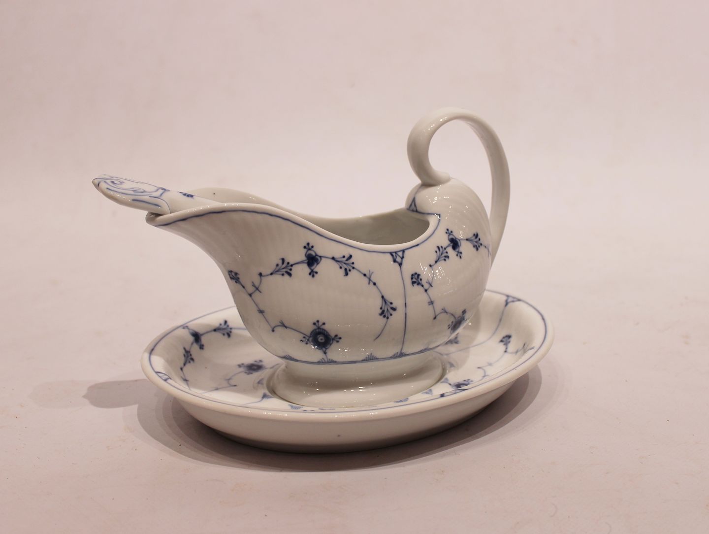 SoldRoyal Copenhagen blue fluted sauce boat, with saucer and server.