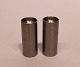 A pair of salt and pepper shakers in stainless steel by Stelton.